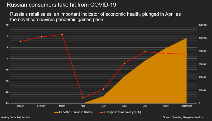 有经济学家认为,电子商务的繁荣对俄罗斯经济也是一个积极的信号。他们认为,俄罗斯目前过于依赖石油和天然气产业,在封城措施推行后,俄罗斯国内零售总额(衡量国内消费需求的重要指标)就出现了大幅下降,让该国的经济状况受到严重打击。