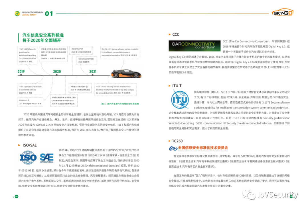 2020 年国内外围绕汽车网络安全的标准将全面铺开,总体上呈现出以自动驾驶、V2X 等应用场景为目标抓手,指导汽车产业链在概念、开发、生产、运维等各阶段开展网络安全活动。