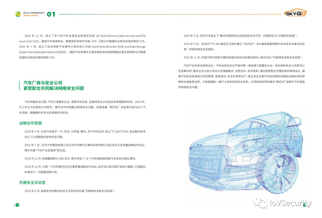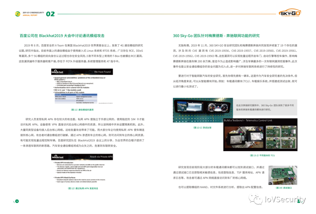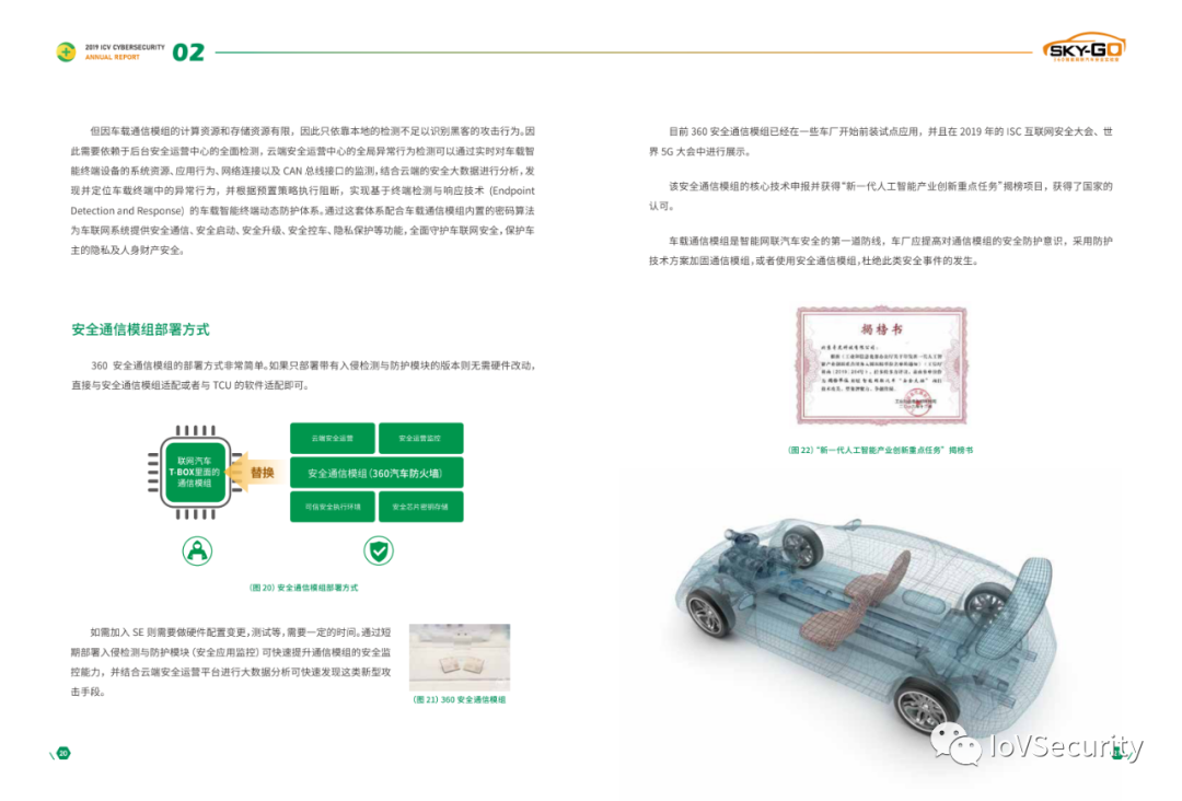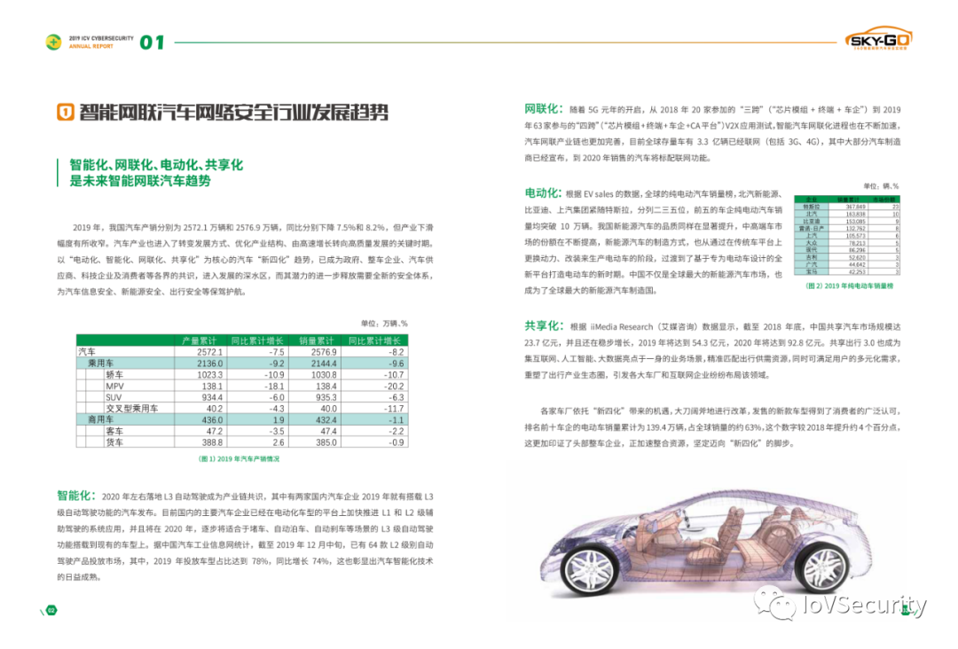 《报告》从智能网联汽车网络安全发展趋势,新兴攻击手段,汽车安全攻击事件,汽车安全风险总结和安全建设建议等方面对2019年智能网联汽车信息安全的发展做了梳理。