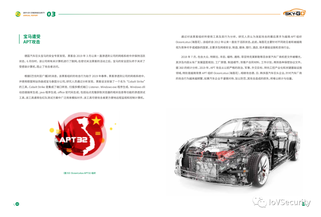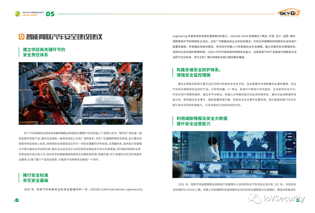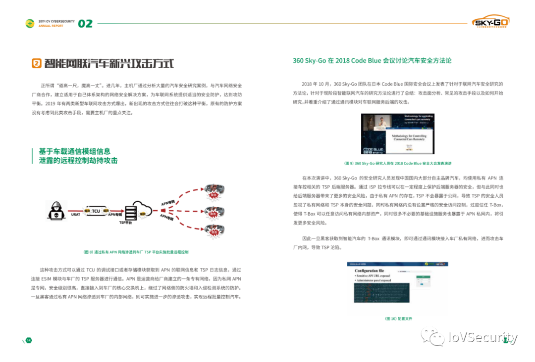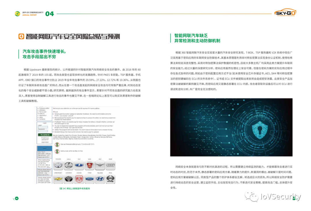 《报告》从智能网联汽车网络安全发展趋势,新兴攻击手段,汽车安全攻击事件,汽车安全风险总结和安全建设建议等方面对2019年智能网联汽车信息安全的发展做了梳理。