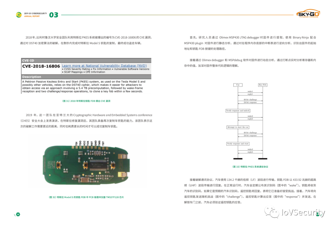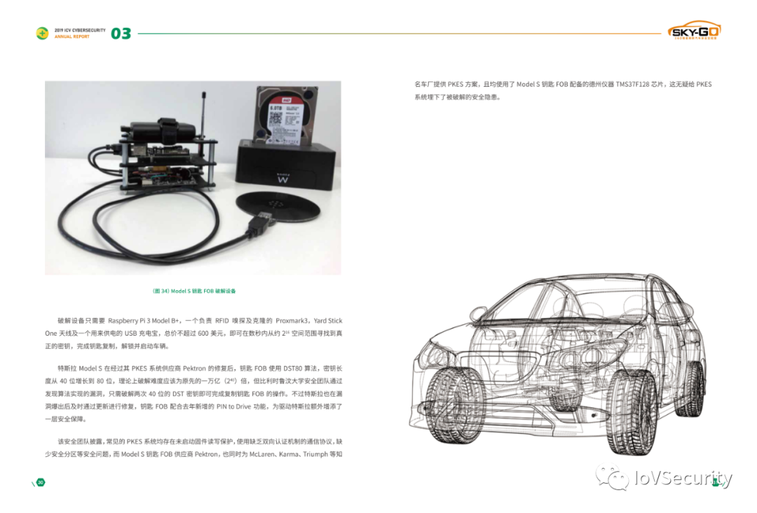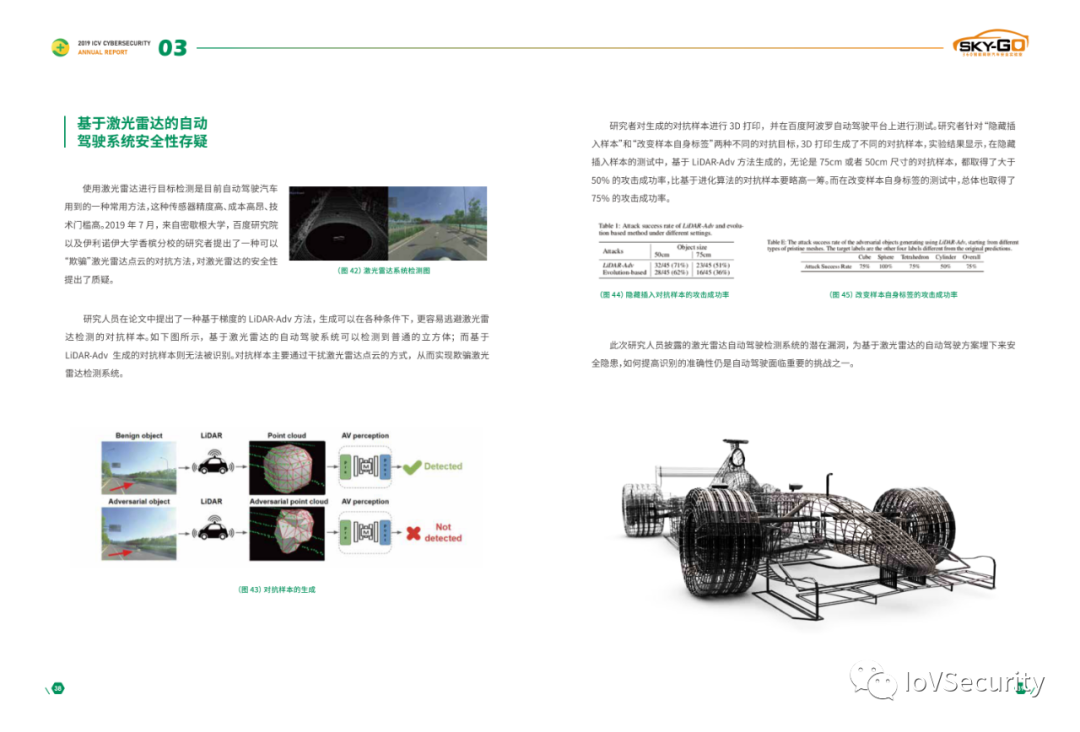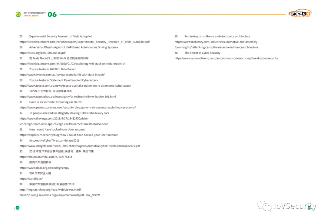 2019年,智能网联汽车全球范围内出现了十大安全事件,包括基于通信模组的远程控制劫持攻击,基于生成式对抗网络(GAN)自动驾驶算法攻击,特斯拉PKES系统存在中继攻击威胁,特斯拉Model S/X WiFi协议存在缓存区溢出漏洞,共享汽车APP存在漏洞,基于激光雷达的自动驾驶系统安全性存疑,Uber爆出存在账号劫持漏洞,后装汽车防盗系统存在漏洞,丰田汽车服务器遭到入侵,宝马遭受APT攻击。