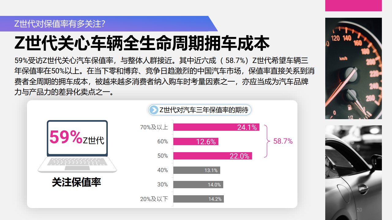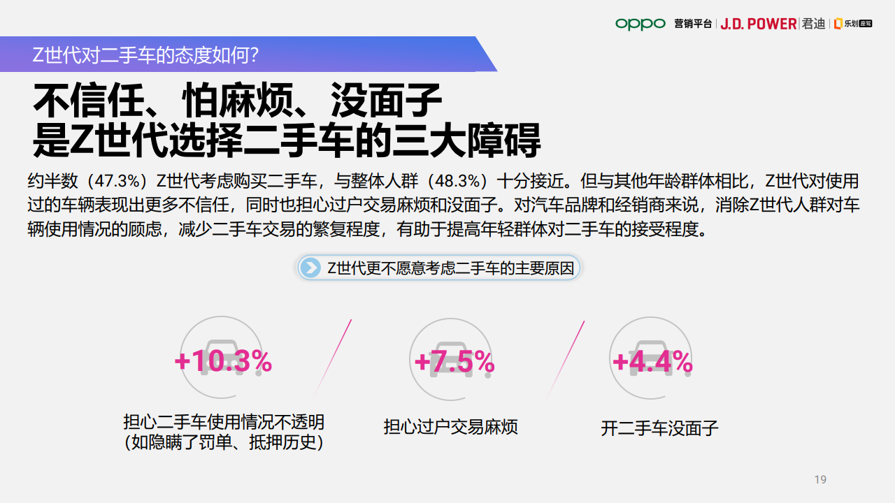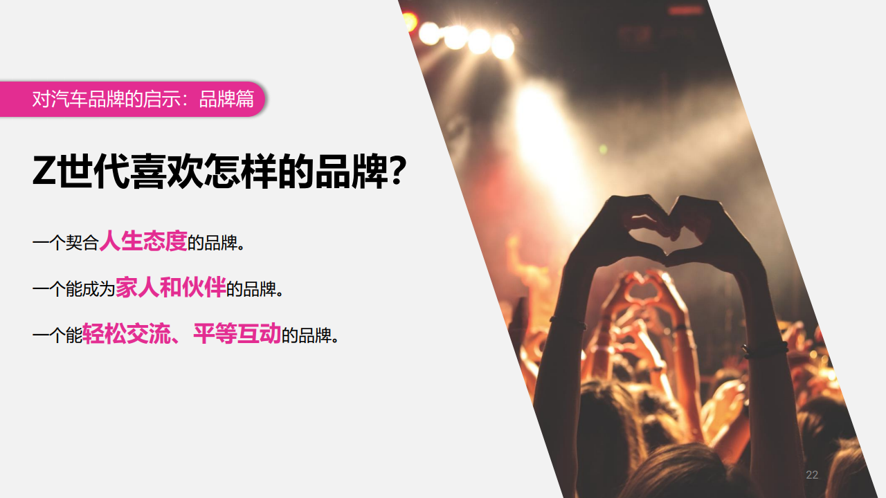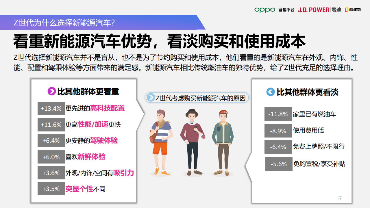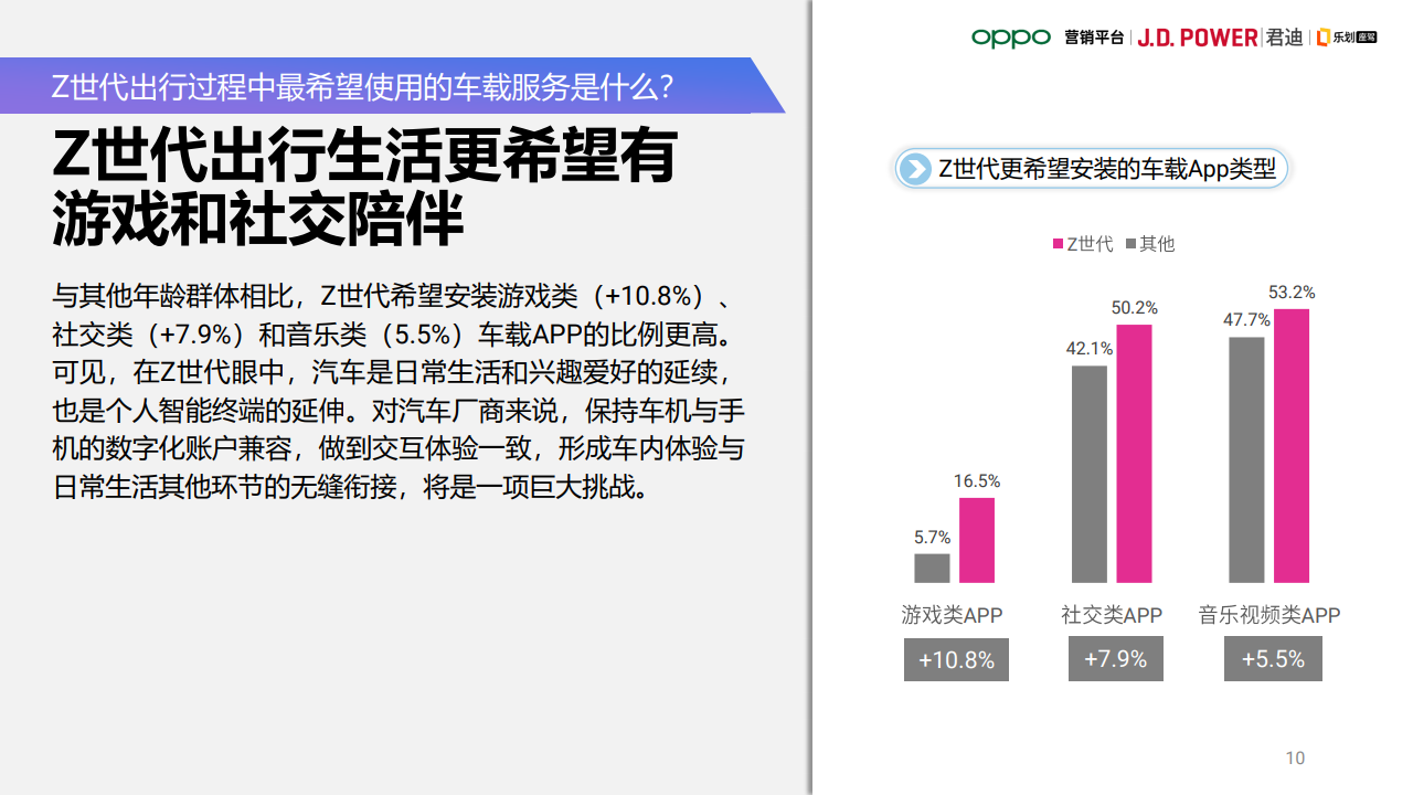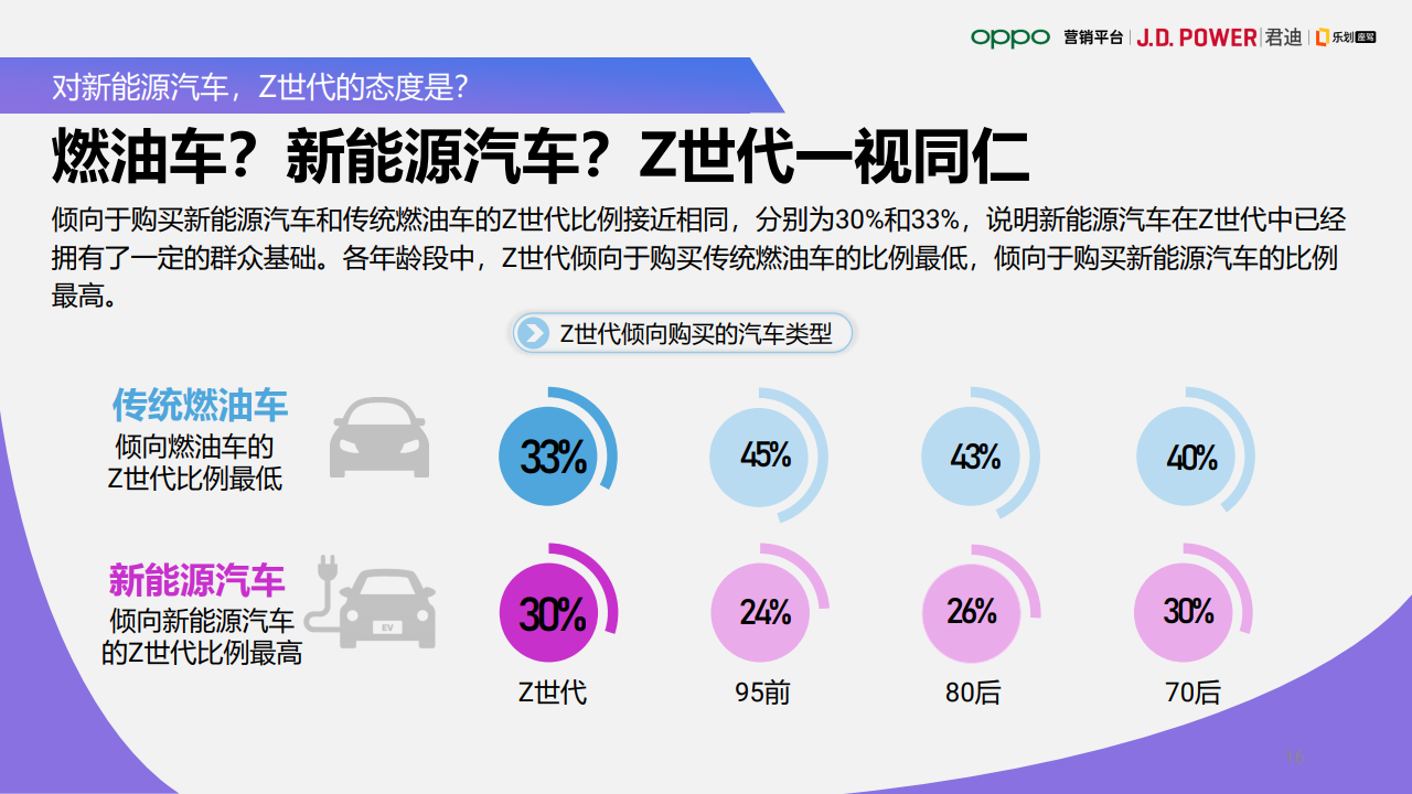 OPPO&J.D.POWER:2020中国Z世代购车倾向调查 该调查以Z世代用户为主要调查对象,通过将Z世代和其他年龄群体进行比较,重点研究了Z世代的人生态度、购车倾向与偏好等,是汽车品牌了解Z世代、赢得Z世代的重要参考。 在Z世代眼中,汽车作为交通工具的传统功能被弱化,但智能终端属性和情感属性被强化。认为汽车是智能移动空间(+9.0%)、家庭一员(+5.9%)、科技玩伴(+5.5%)和出行伙伴(5.2%)的Z世代高于其他年龄群体。 PDF版本将分享到199IT知识星球,扫描下面二维码即可! 更多阅读:Canalys:2022年Q1中国大陆手机市场出货量仅7560万台 荣耀首次登顶德勤咨询:2020中国与全球企业人工智能应用现状调研生生不息:Z世代与财会行业的未来报告OK Zoomer:Z世代群体调查报告报告:Z世代即将成年–21岁!无国界的一代:拥抱Z世代消费者Z世代报告:揭示如何制定赢得Z世代的移动策略Morning Consult:理解Z世代JWT报告:了解Z世代Z世代报告:无界限的一代中国旅游研究院:2020中国冰雪旅游发展J.D.Power:2021年中国汽车市场魅力指数J.D.Power:2021年中国汽车智能化研究 国产车碾压合资品牌J.D.Power:2021年中国汽车销售满意度排名 豪华车林肯第一J.D.Power:2020中国汽车销售满意度研究