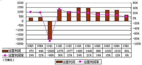 运营费用为8917万美元,去年同期为4722万美元, 2012年第四季度为8258万美元。除去美国会计准则下期权相关费用的计算影响,本季度运营费用为7720万美元,去年同期运营费用为3555万美元,上季度为6861万美元。
