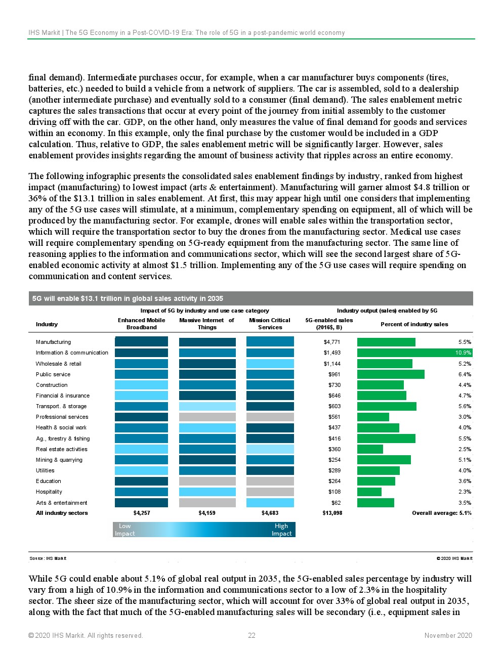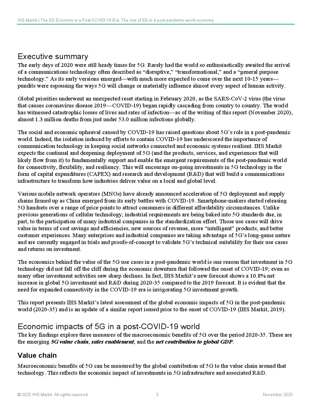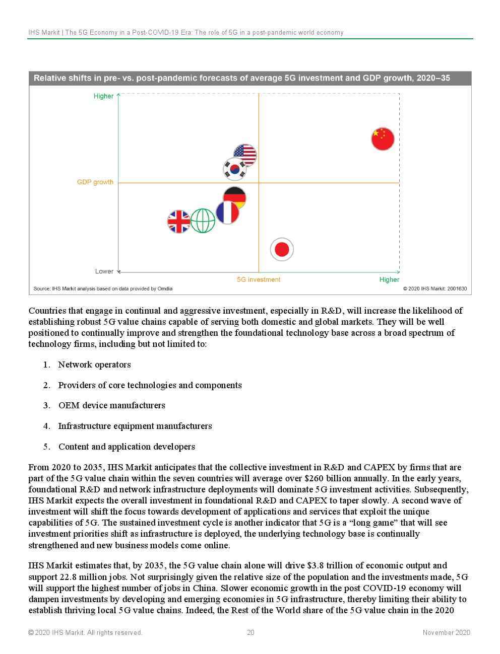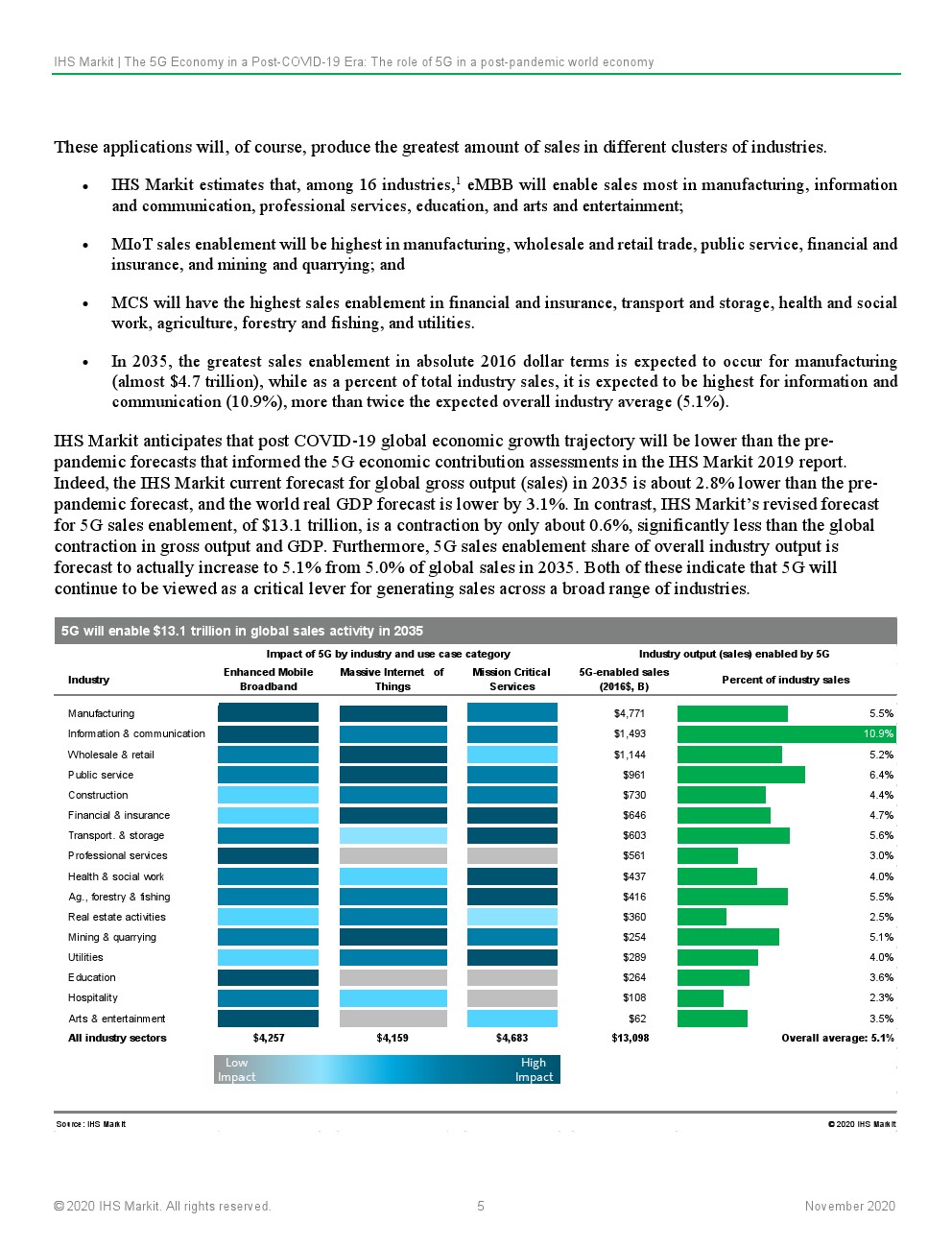 IHS Markit预计,5G的持续和深化部署将从根本上支持和实现大流行后世界对连通性、灵活性和弹性的紧急需求。这将鼓励以资本支出(CAPEX)和研发(R&D)的形式对5G技术进行持续投资,这些投资将建设通信基础设施,以改变行业在当地和全球层面提供价值的方式。