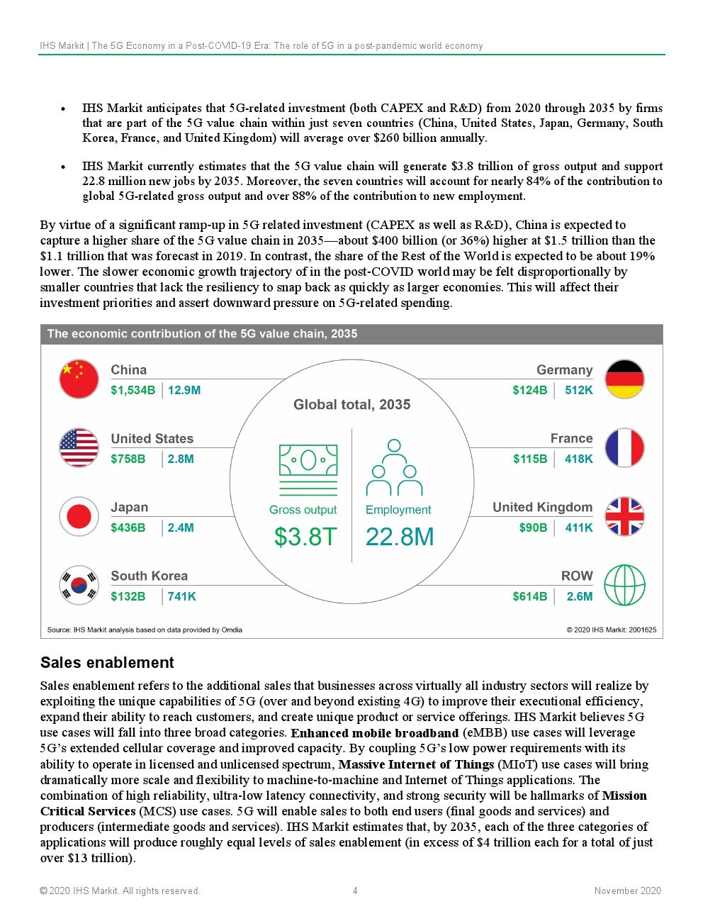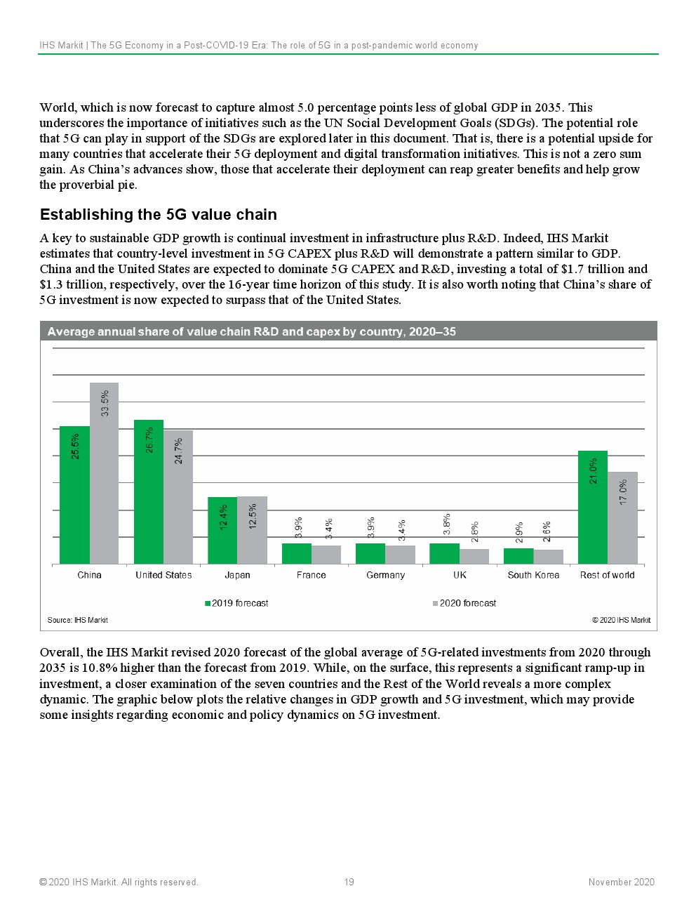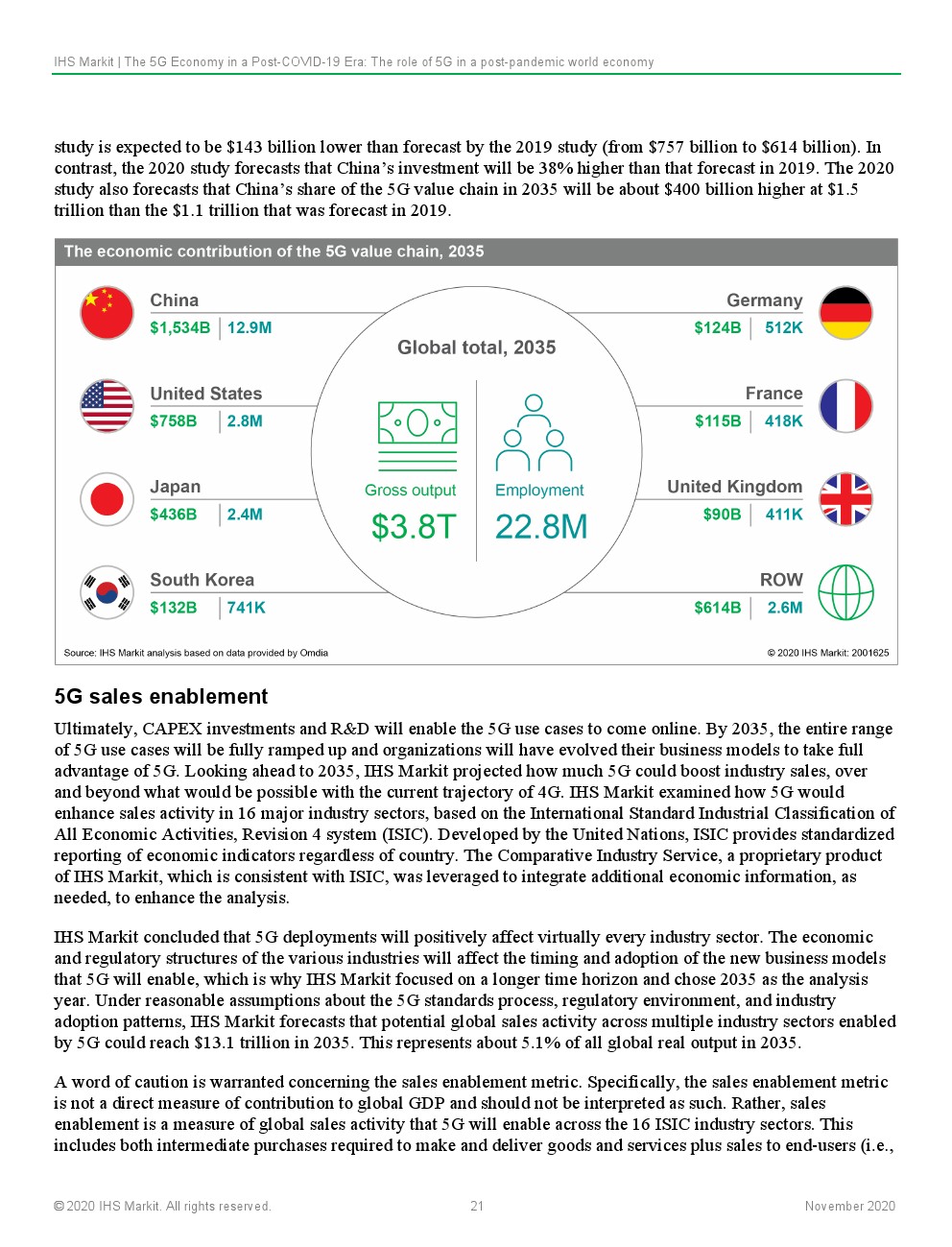 IHS Markit预计,5G的持续和深化部署将从根本上支持和实现大流行后世界对连通性、灵活性和弹性的紧急需求。这将鼓励以资本支出(CAPEX)和研发(R&D)的形式对5G技术进行持续投资,这些投资将建设通信基础设施,以改变行业在当地和全球层面提供价值的方式。