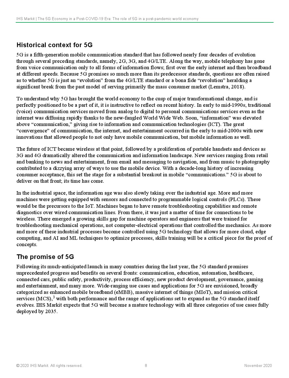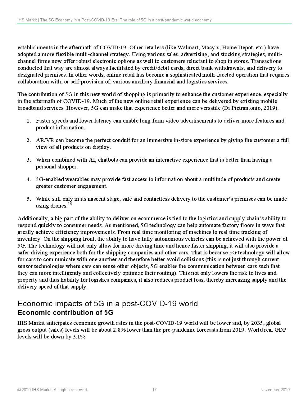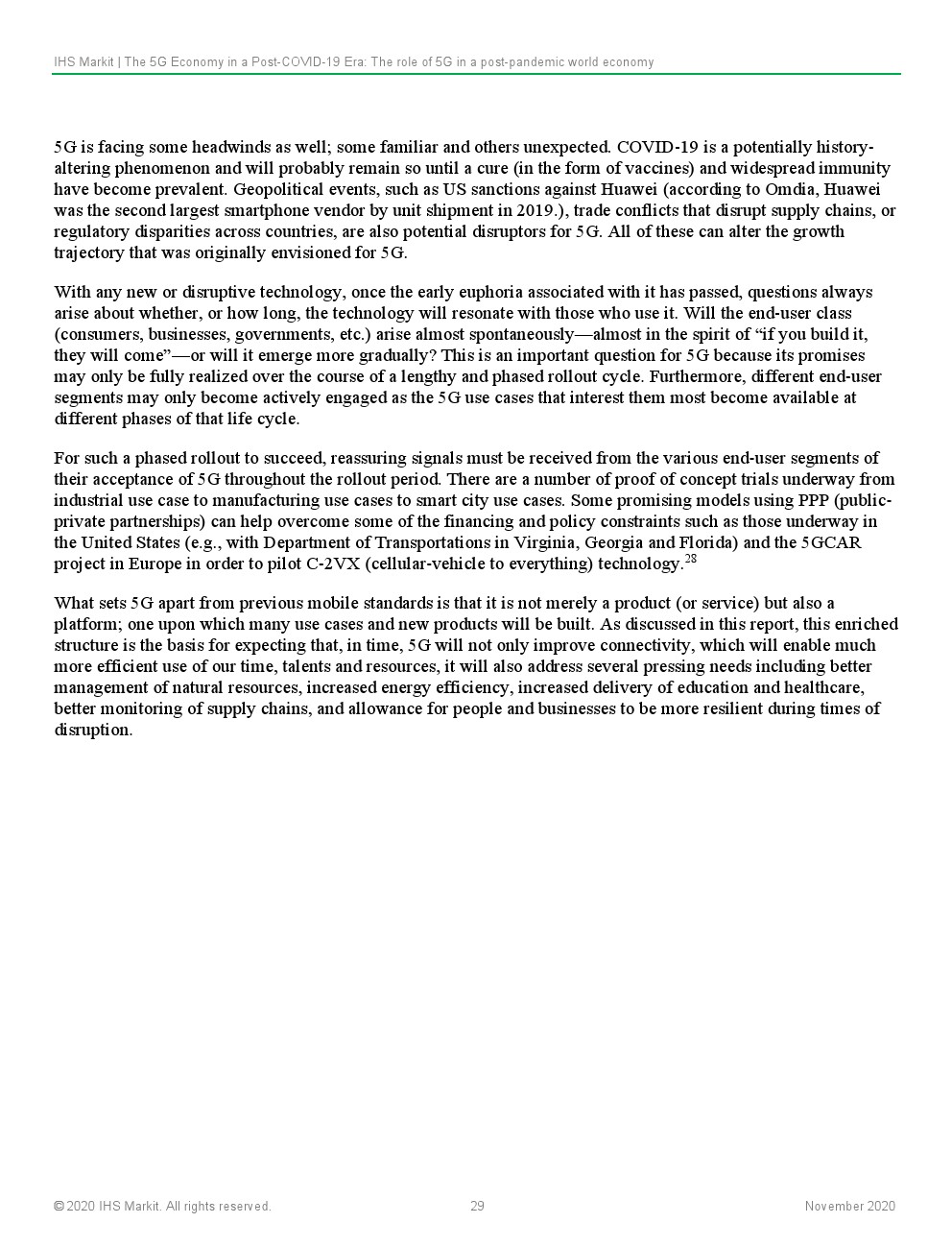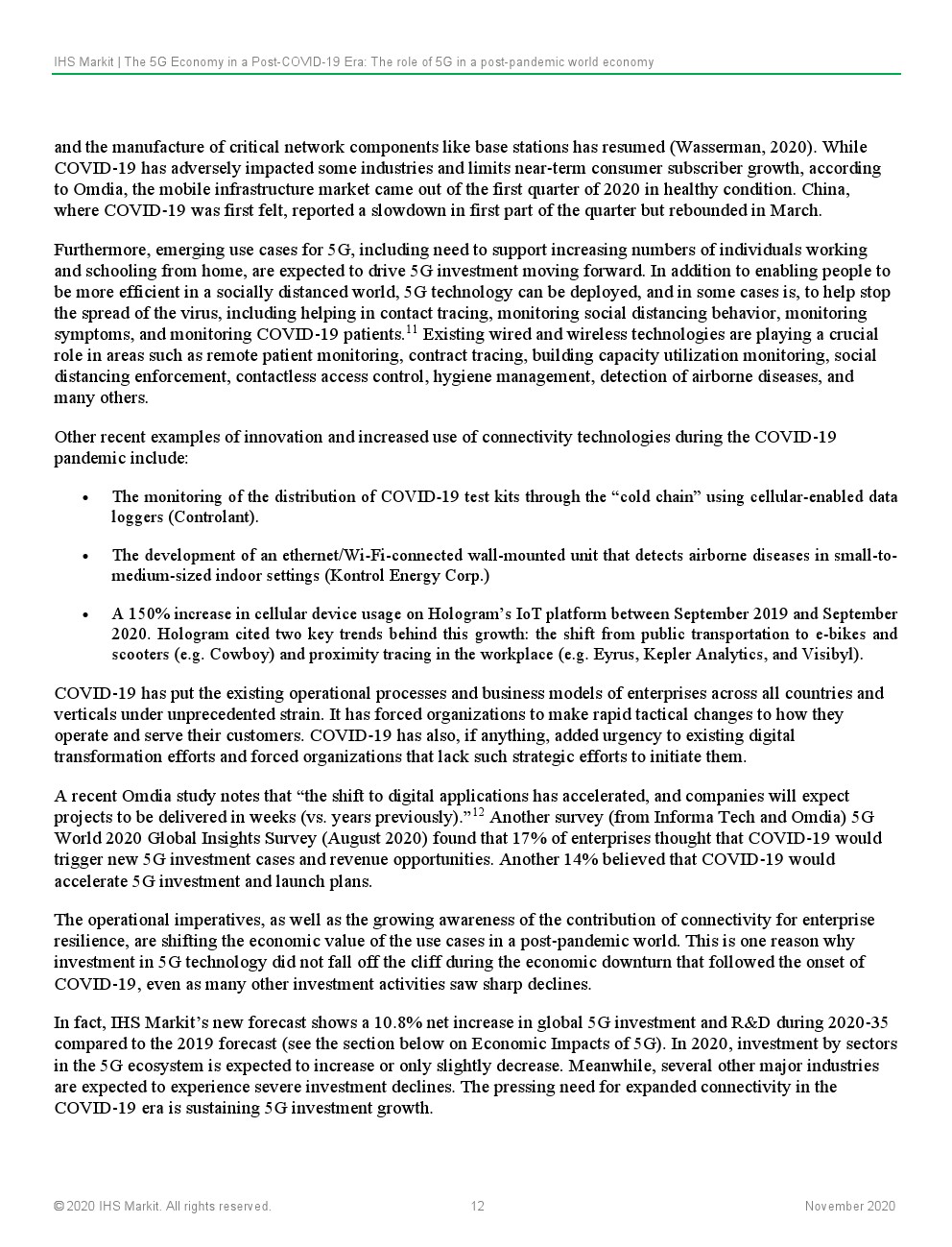 IHS Markit预计,5G的持续和深化部署将从根本上支持和实现大流行后世界对连通性、灵活性和弹性的紧急需求。这将鼓励以资本支出(CAPEX)和研发(R&D)的形式对5G技术进行持续投资,这些投资将建设通信基础设施,以改变行业在当地和全球层面提供价值的方式。
