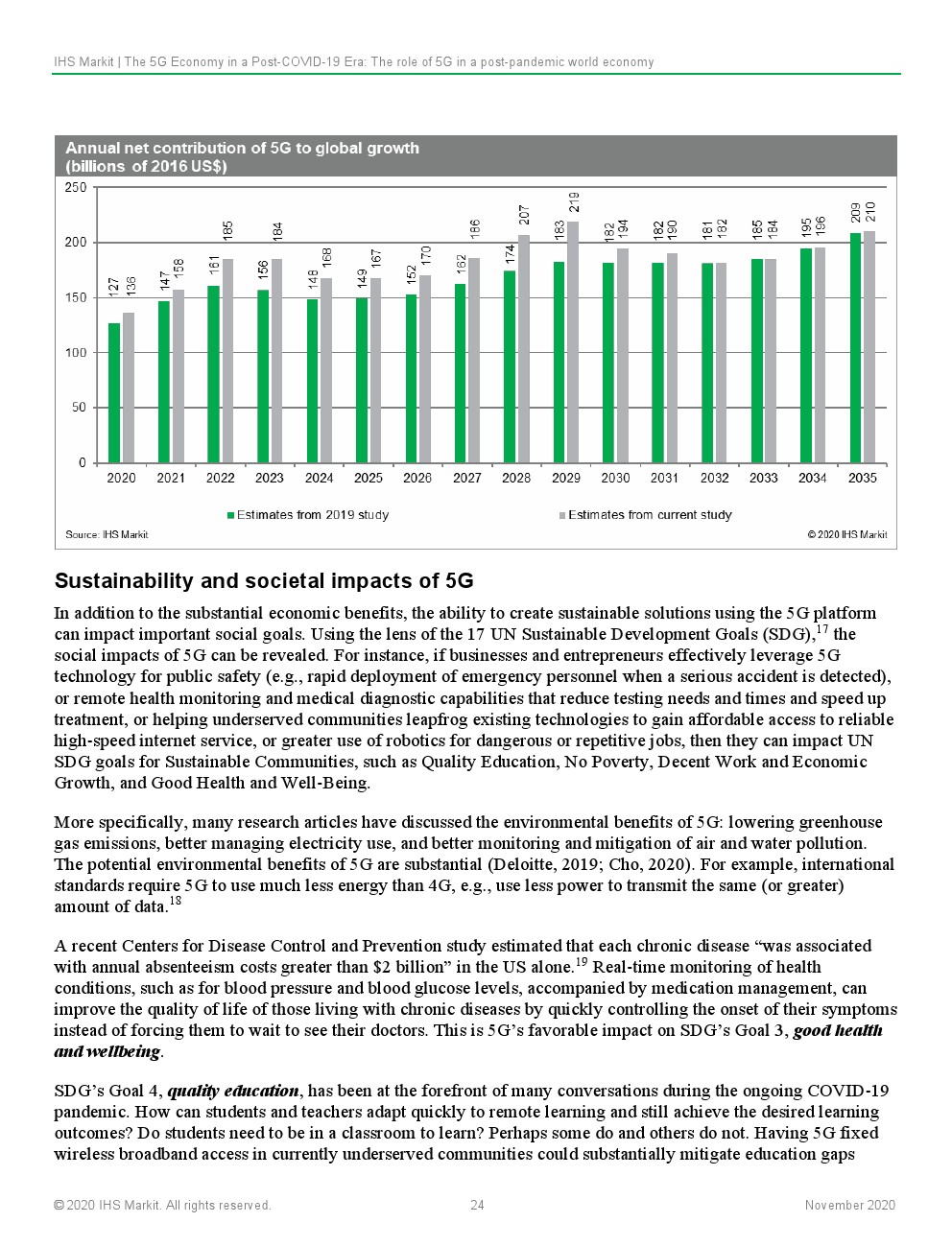 在新冠肺炎出现后的经济衰退期间,对5G技术的投资并未走下坡路,尽管许多其他投资活动出现了大幅下降。事实上,IHS Markit的新预测显示,与2019年的预测相比,2020-2035年间全球5G投资和研发净增长10.8%。显而易见,新冠肺炎时代对扩大互联互通的需求正在促进5G投资的增长。