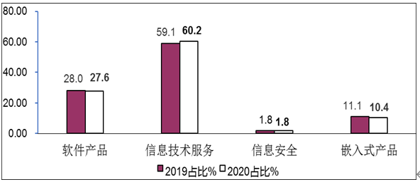 图5 2019年/2020年1-10月软件业分类收入占比情况