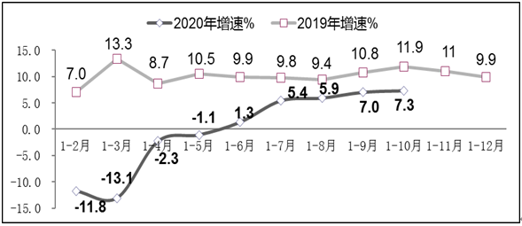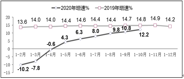 图1 2019年-2020年1-10月软件业务收入增长情况