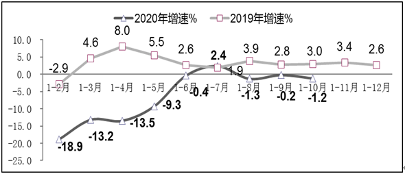 图2 2019年-2020年1-10月软件业利润总额增长情况