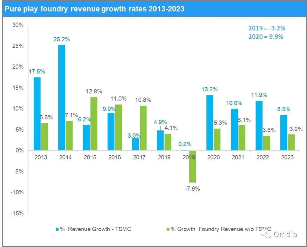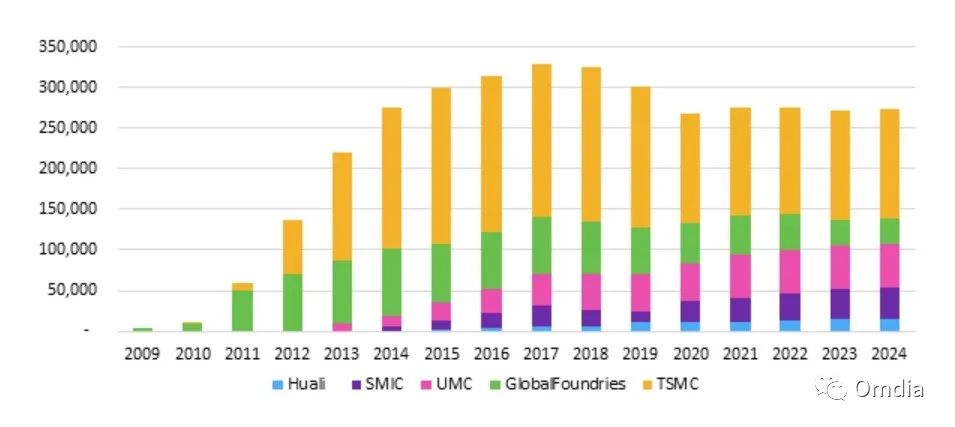 从全球纯晶圆代工的营收趋势来看,除去台积电引领的最先进工艺的高毛利,其他全球的晶圆厂营收主要来自于稳定成熟的工艺。纯晶圆代工的企业中,联电、Globalfoundry、SMIC等,在28nm(以及相关衍生工艺)上都有稳步的性能提升及各种新产品的导入来满足客户不同需求。
