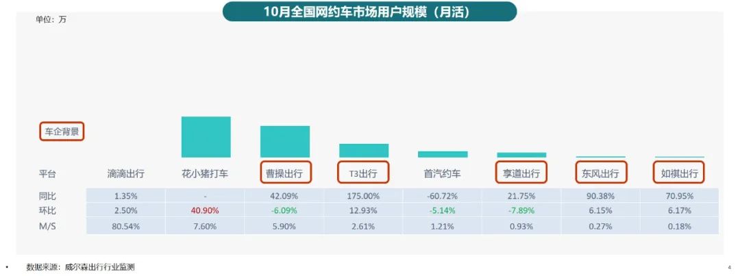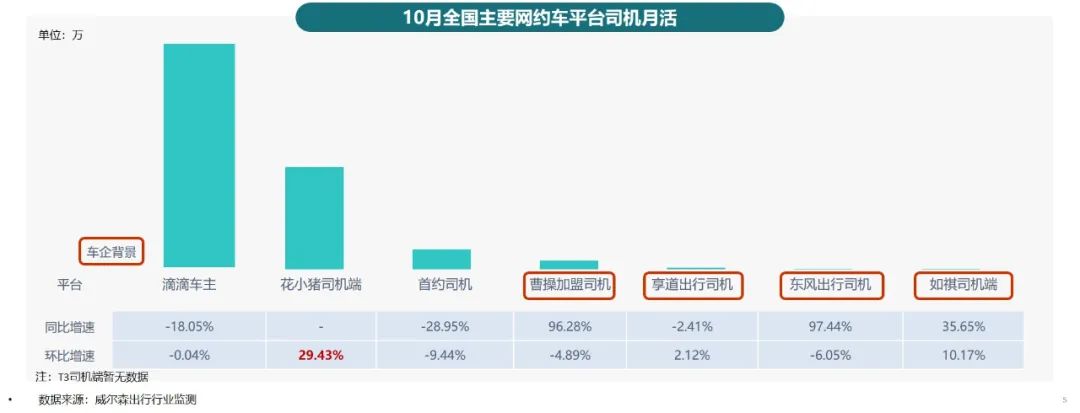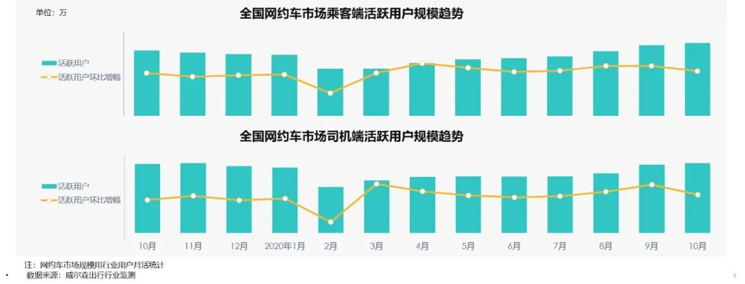 网约车市场用户月活继续保持增长,但增幅有所回落,环比增长2.8% ;司机月活规模环比增长2.4%,运力保持增长趋势。