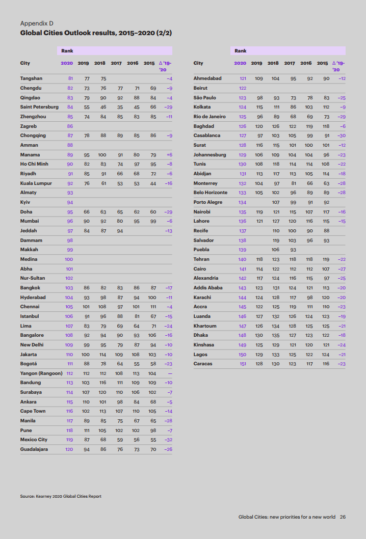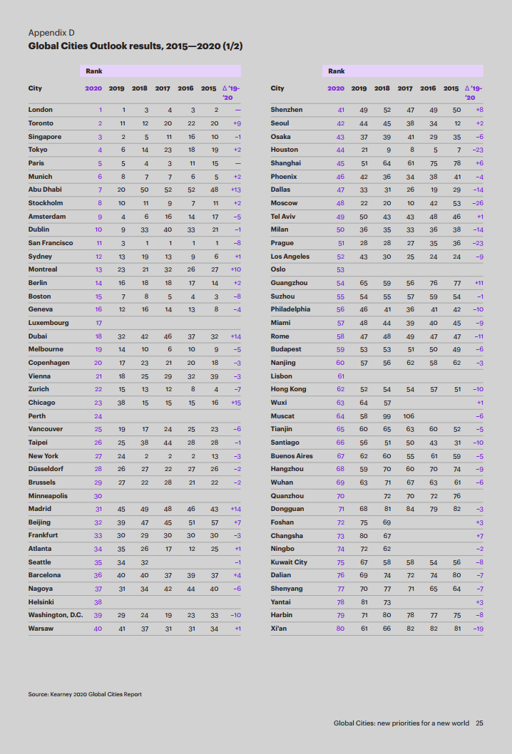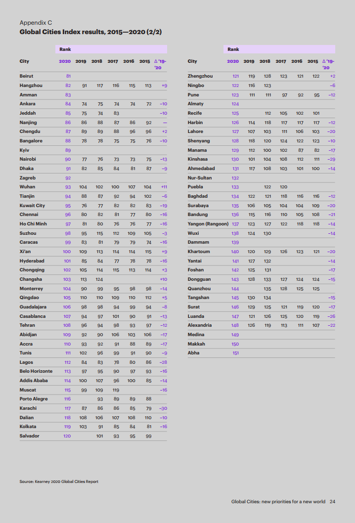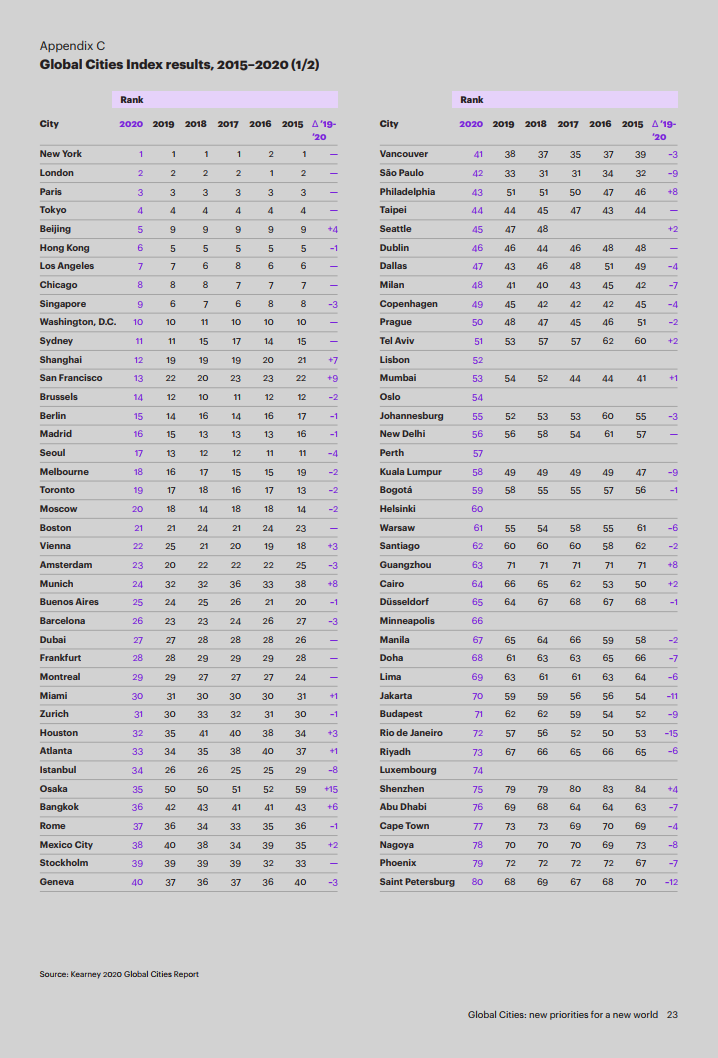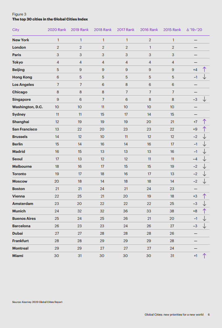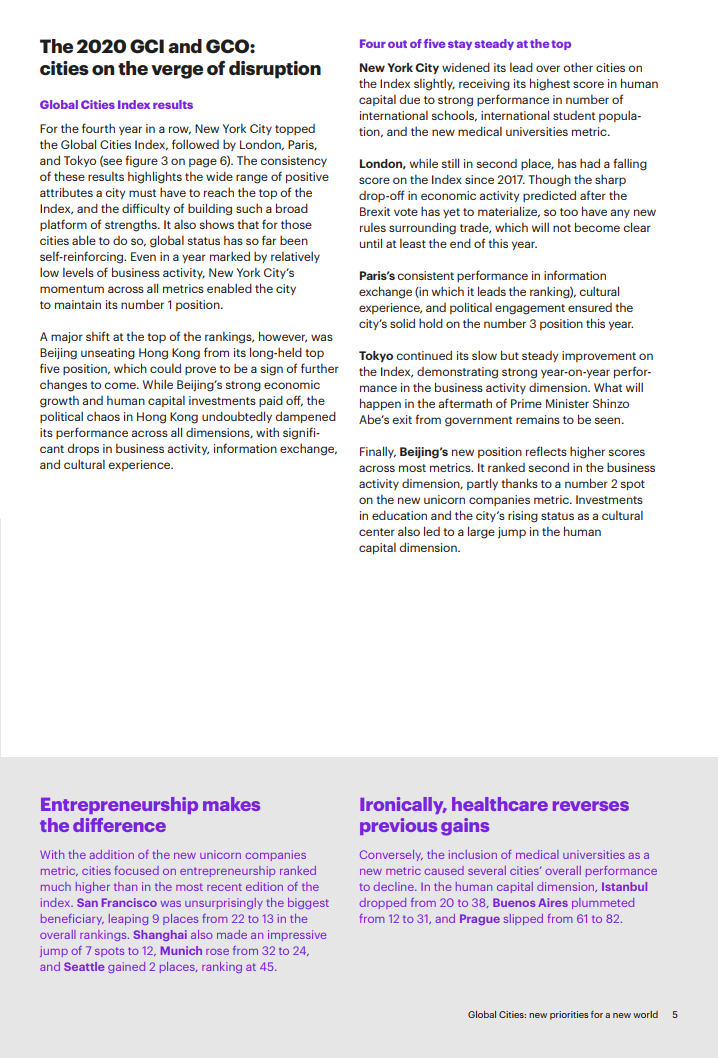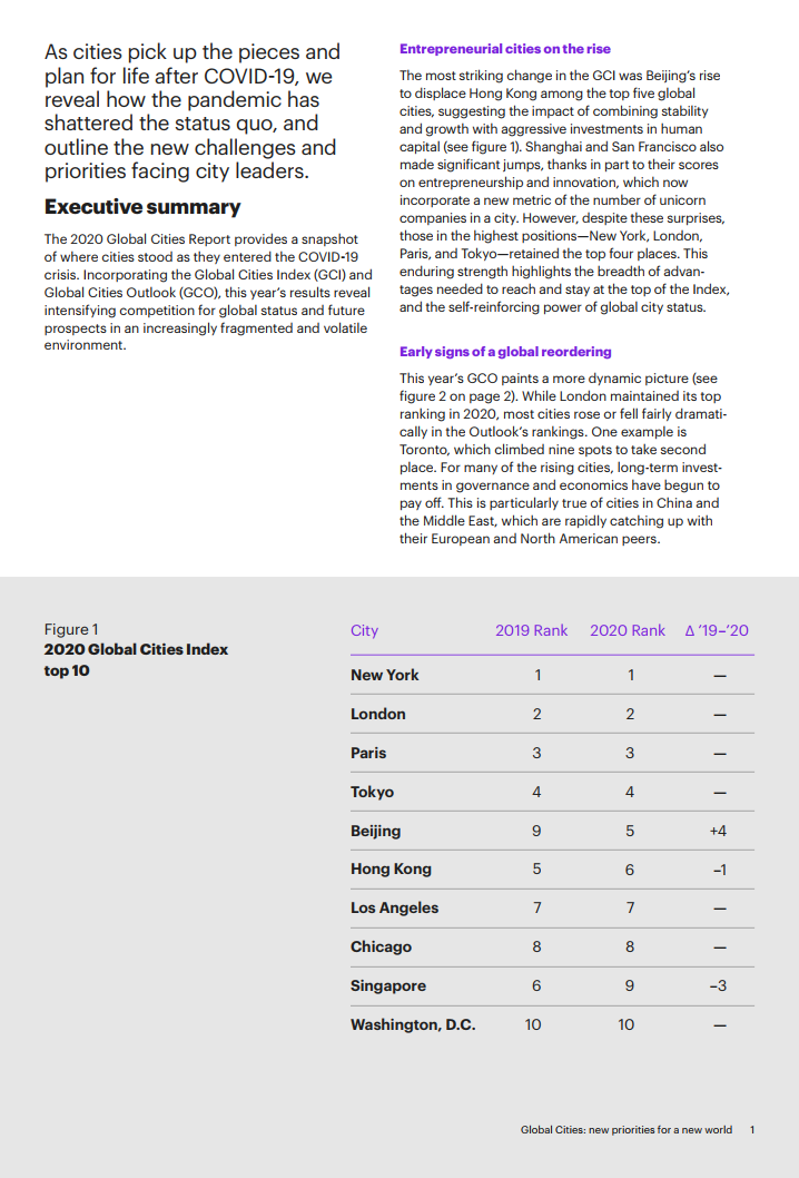 2020年《全球城市综合排名》——中国内地城市表现持续提升