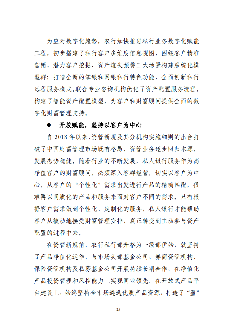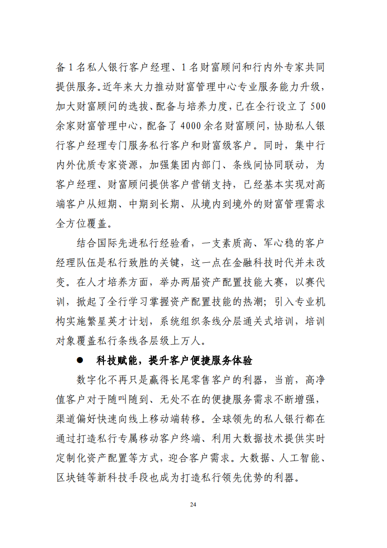 私人银行应当以更精细化的客户管理能力、更生态化的产品构建能力、更专业化的投研顾问能力、更智能化的数字服务能力、更定制化的传承规划能力、更精英化的人才队伍建设、更全面化的风控合规能力,打造更具独特性的竞争优势,铸炼更具韧性的核心能力。