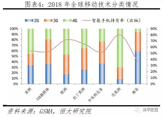 全球手机用户急速增长带来巨大潜在市场,4G技术令通讯与互联网更好结合,移动终端超过电脑终端成为互联网领域新的增长动力。从用户端来看,截止2018年年底,全球手机用户约51亿,渗透率67.2%,其中36亿用户使用网络服务;从服务提供端来看,截止2019年8月,全球225个国家和地区、769个服务运营商开通LTE(4G)商用网络,其中134个国家和地区推进LTE-A(4G增强版)商用网络。从技术类型来看,4G取代2G成为主流,2018年共34亿用户使用4G网络,总量占比43%;从经济贡献率来看,2018年移动互联技术和服务直接和间接增加工作岗位320万个,产生经济价值3.9万亿美元,为公共部门增加税收超5000亿美元。