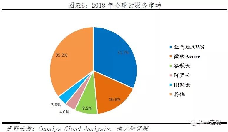 美国称霸全球云服务领域,中国仅在内地市场拥有较强竞争力。云计算实际上是对互联网上的计算、存储和网络三类资源和应用进行系统管理与调配。按照服务形式,云计算主要可以分为三类——基础设施即服务(IaaS),平台即服务(PaaS),软件即服务(SaaS)。2018年全球云服务市场中,亚马逊AWS市场占有率接近32%,其余为微软Azure、谷歌云、IBM云,美国企业合计占比超60%,中国仅阿里云份额较为靠前,排名第四、全球市场份额不到5%,主要集中大陆市场。