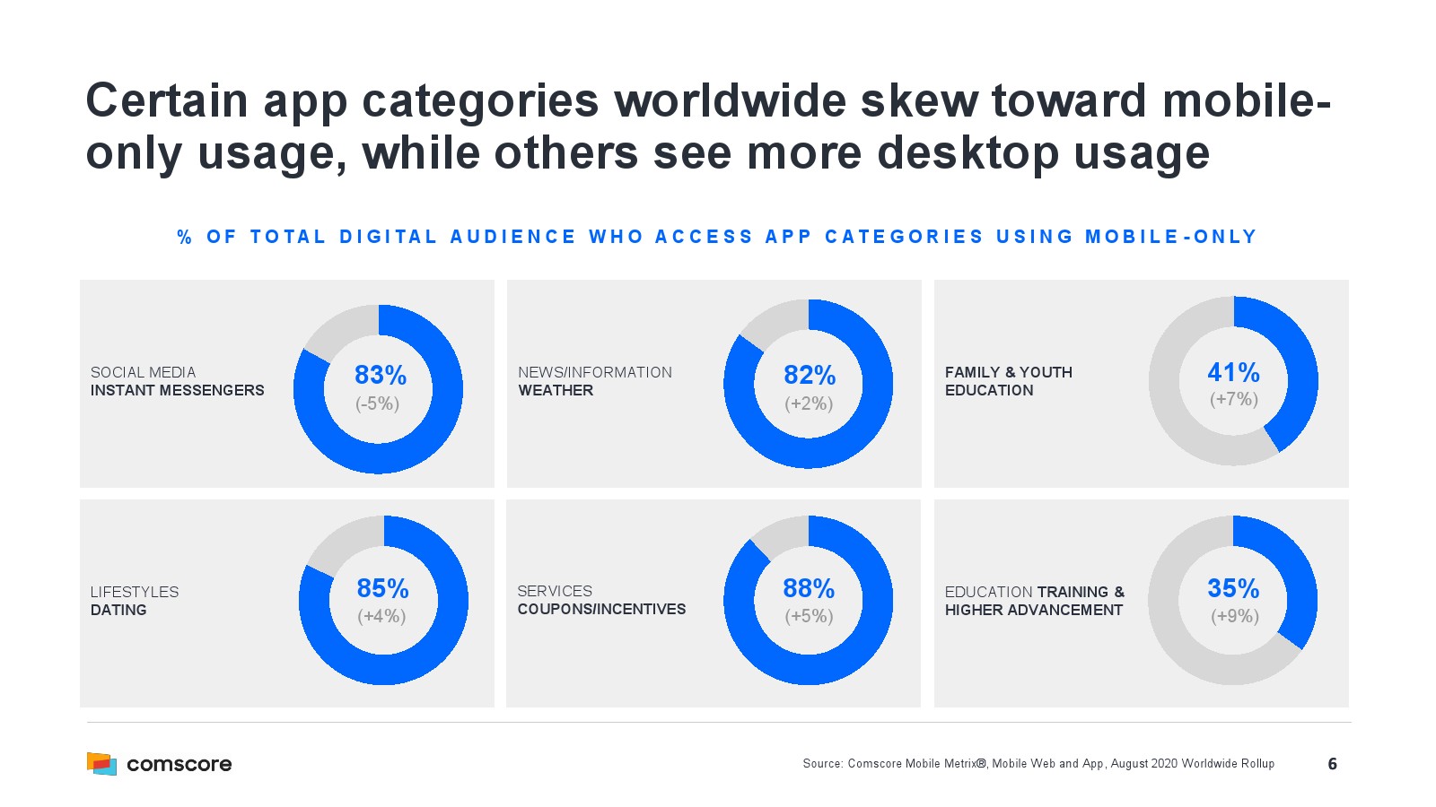 这项研究使用comScore的移动和多平台数据来探索移动趋势和行为,以及COVID-19对25个国家/地区的移动品牌和在线类别的影响。