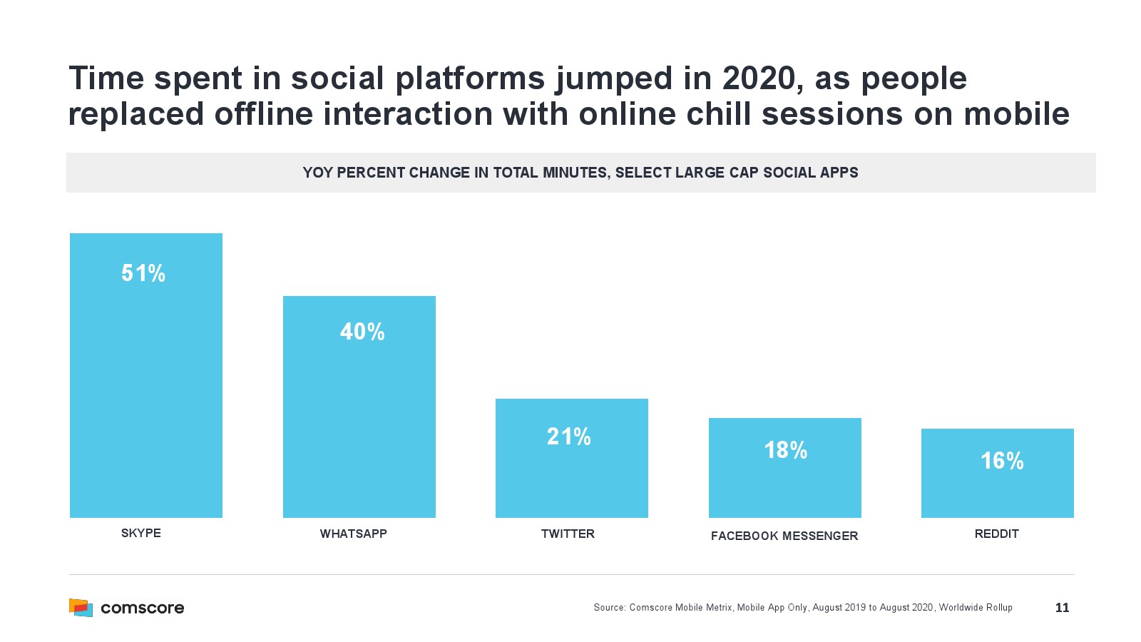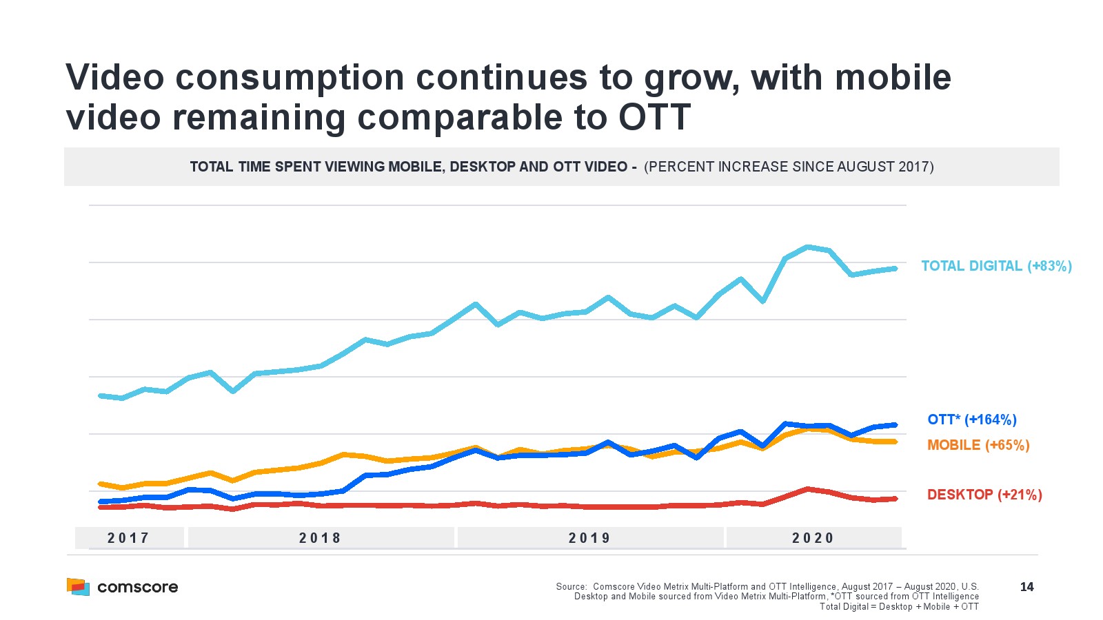 comScore发布了“2020年全球移动报告”,全球消费者在网上花费更多的时间。受COVID-19大流行影响,移动设备上网络内容的参与度不断提高,尤其是网络视频。