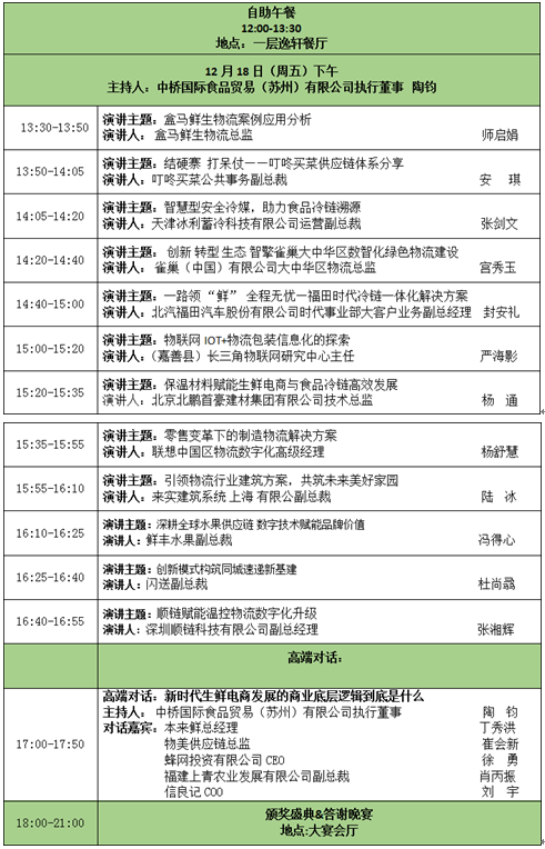 同期,还将召开“冷链启航,循环包装”主题分论坛,探索生鲜电商与冷链物流行业新模式,探讨最前沿的商业模式。旨在全方面搭建数字电商与智慧物流供应链生态平台,实现商业与物流企业共同繁荣。同期我们还将举行《生鲜电商物流包装规范》行业标准意见征集会。