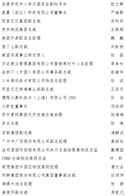 政府机关领导、行业协会、电商与物流产业链相关企业董事长、总裁、总经理、副总经理、总监、主管、经理、学术派专家。