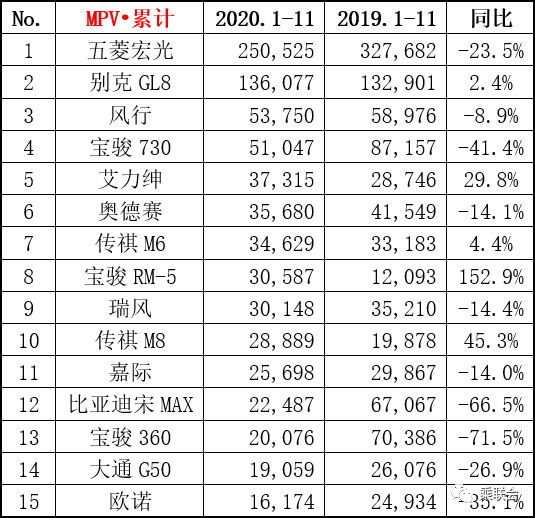 - 11月份MPV销量11.2万辆,同比下降4.1%,环比增长4.5%;累计销量95.2万辆,同比下降23.4%。