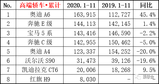 - 11月份轿车销量100.6万辆,同比增长8.3%,环比增长6.2%;累计销量818.2万辆,同比下降10.3%。