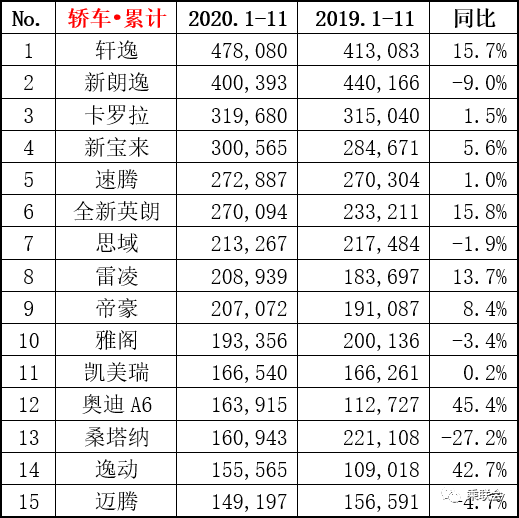 11月市占率:在入榜的车企中,德系车(四家)合计23.3%;日系车(五家)22.1%;自主品牌(五家车企)26.0%;美系车(上汽通用)6.9%;自主品牌本月占有率提升了1.2个百分点。入榜的前15家占有狭义乘用车零售市场的78.3%份额。
