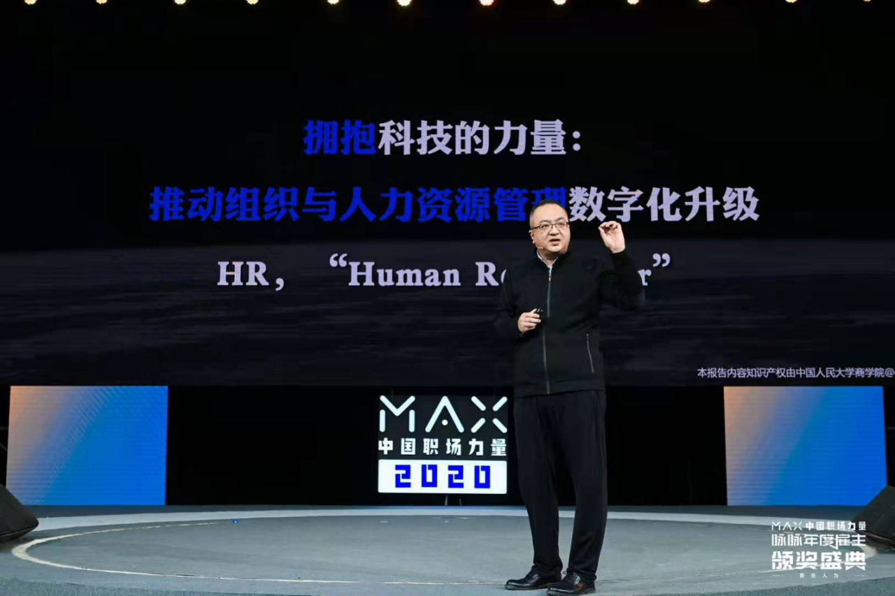 中国人民大学商学院组织创新与人才战略教学杰出教授周禹教授则从人才与组织的角度,发表了题为《大变局时代,以人破局、因人兴事》的演讲。