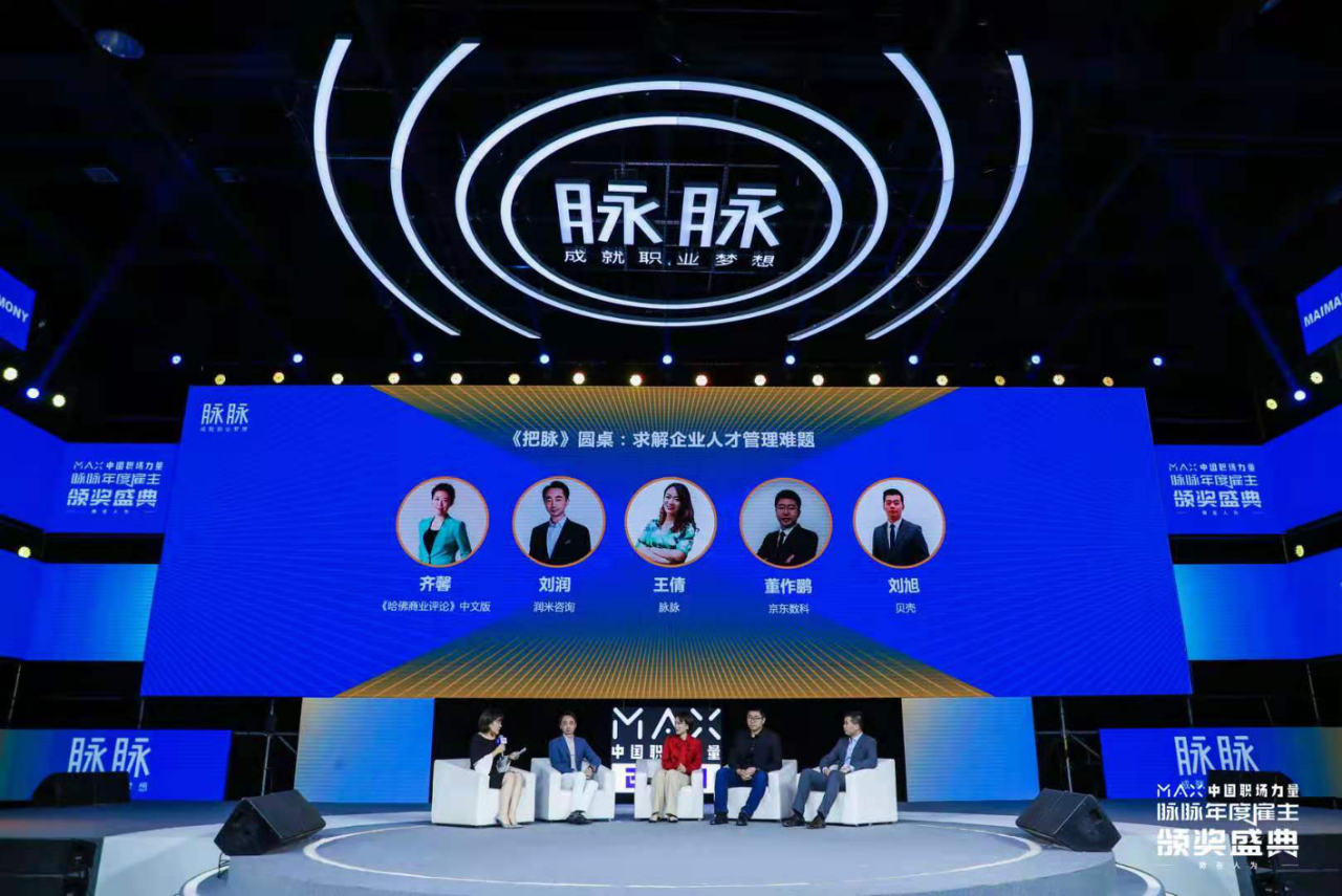 在《把脉:求解企业人才管理难题》的圆桌对话上,《哈佛商业评论》中文版执行出品人兼副主编齐馨女士担任主持人,与润米咨询创始人、前微软战略合作总监刘润、中国人民大学商学院组织创新与人才战略教学杰出教授周禹教授、脉脉联合创始人王倩、京东数科人才引进部总经理董作鹏、贝壳集团招聘中心总监刘旭,针对人力资源从业者在人才选用育留过程中所面临的各种现实问题,给予了解决方案与建议。
