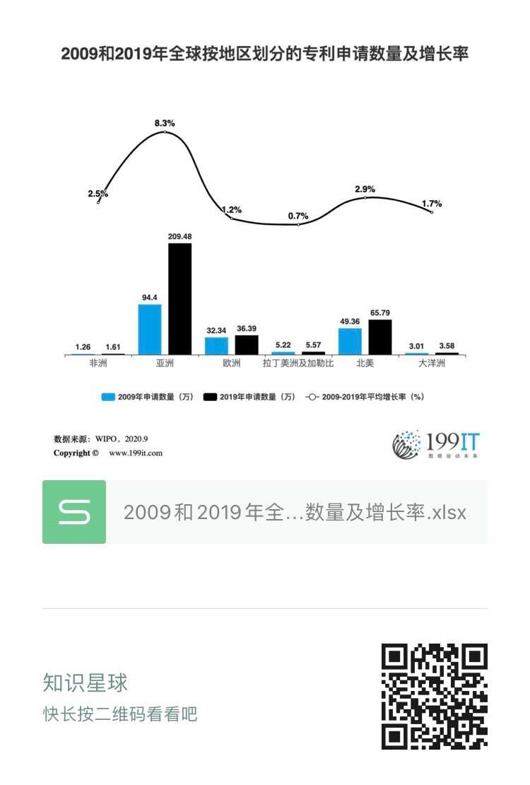 - 2009和2019年全球按收入划分的专利申请数量及增长率(附原数据表)