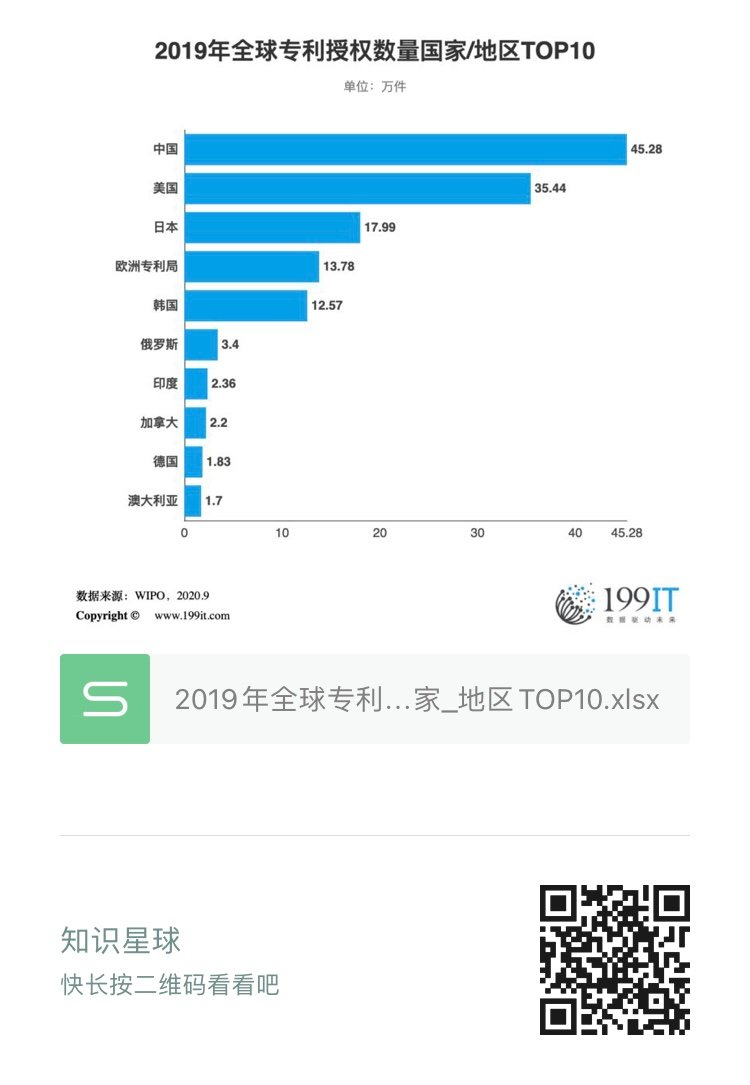 2019年全球专利授权数量国家/地区TOP10(附原数据表) ​​​​