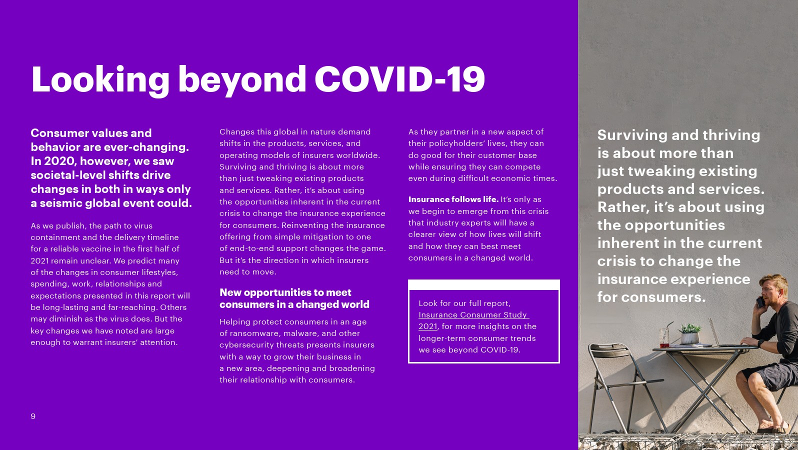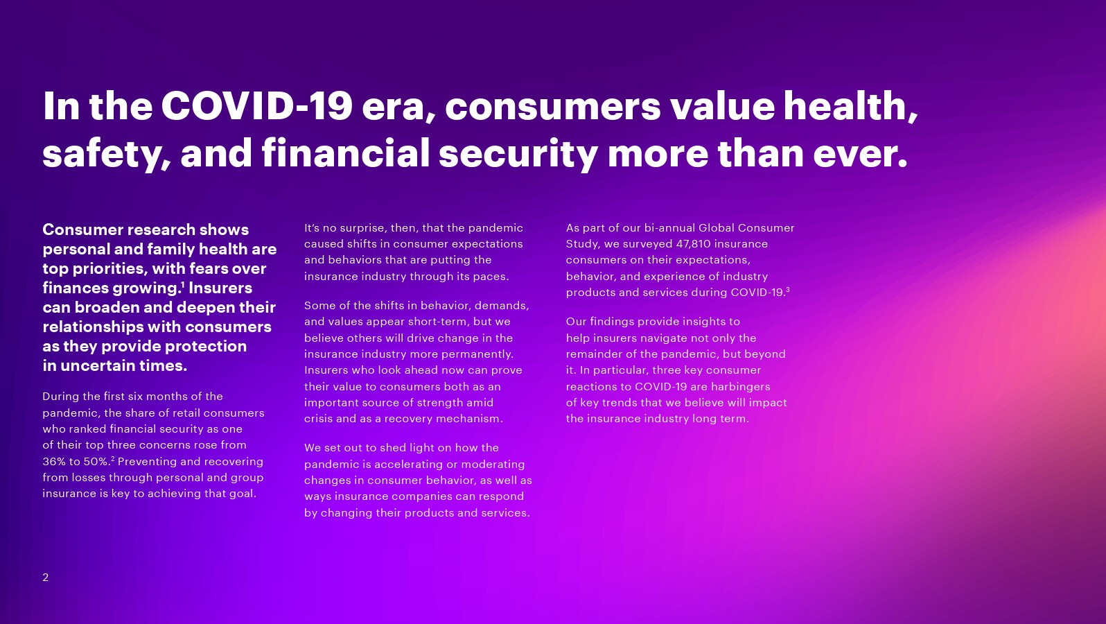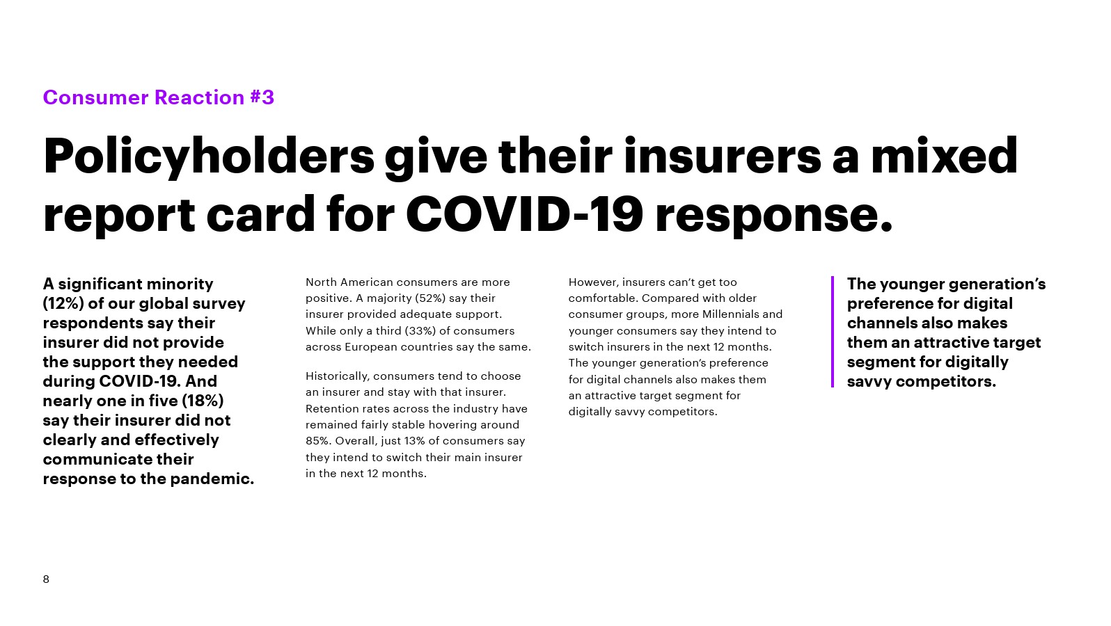 报告基于对全球47,000多名消费者的调查,旨在了解消费者在大流行期间对保险产品和服务的体验和期望如何推动其永久性发展。