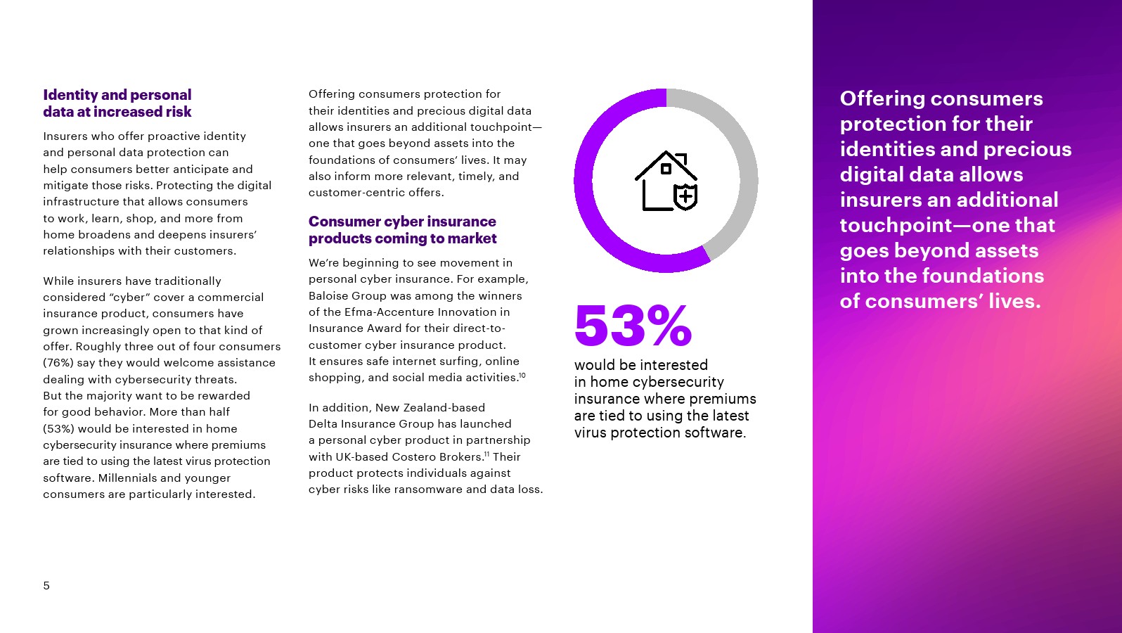 埃森哲的一份新报告显示,因为大流行使更多消费者在线上购物,3/4的消费者(76%)欢迎保险公司提供协助,以应对网络安全威胁。