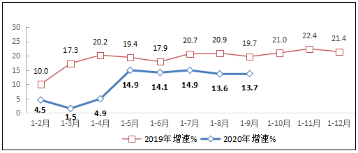 图1 2019-2020年前三季度互联网业务收入增长情况