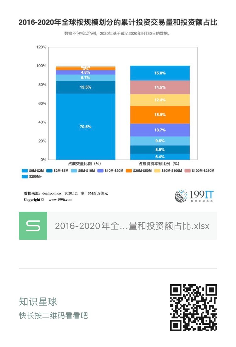 2016-2020年全球按规模划分的累计投资交易量和投资额占比(附原数据表)
