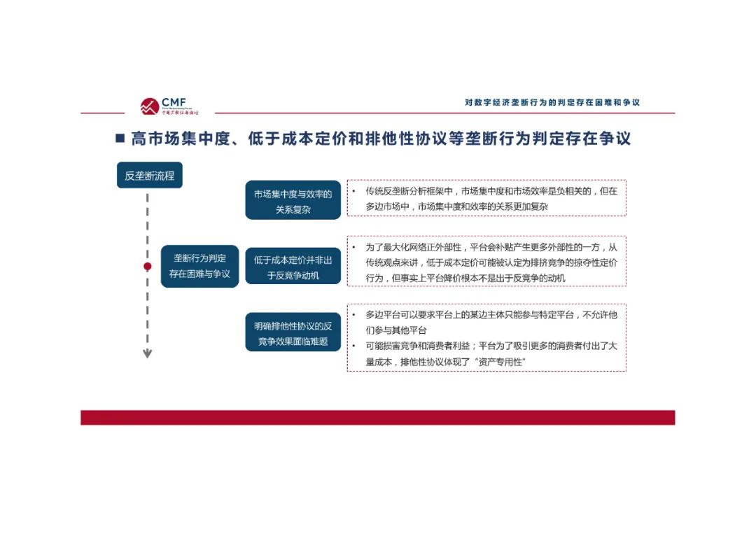 数字经济的这些竞争特点也对反垄断与竞争政策的带来了一些挑战,首先是传统相关市场界定和市场势力测度指标在数字经济时代适用性降低,其次是高市场集中度、低于成本定价和排他性协议等垄断行为判定存在争议,还有先发制人的并购、算法合谋和跨界垄断等垄断行为判定存在争议,最后是反垄断执法实践面临诸多挑战。