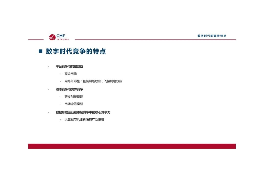 报告指出,目前数字经济的代表互联网企业规模庞大,发展迅速,市场集中度高,引发了各界持续担忧,数字经济时代的竞争特点则是平台竞争与网络效应,动态竞争与跨界竞争并存,以及数据形成企业在市场竞争中的核心竞争力。
