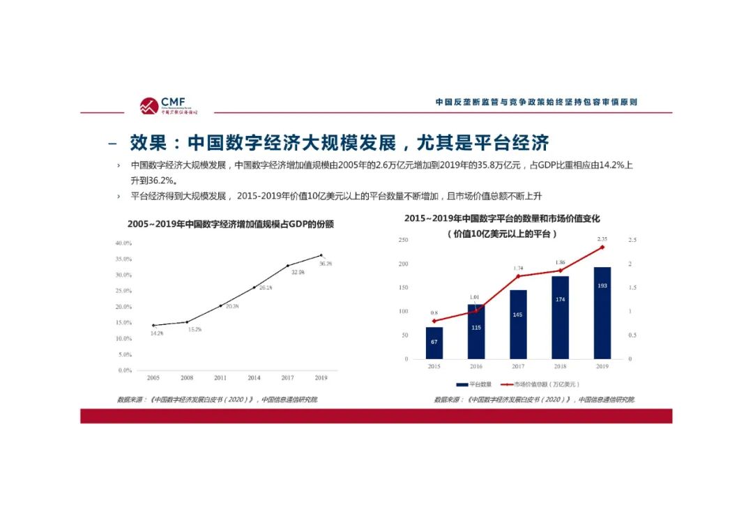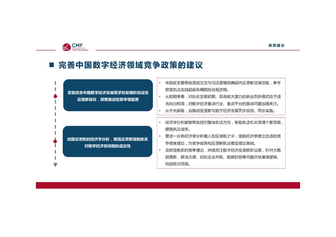 一是紧密结合中国经济发展的需求和发展阶段,设定反垄断的目标,探索推进包容审慎的监管。主要是借鉴美国和参考欧盟。从短期来看,对于处在发展初期具有较大潜力的新业态、新模式应当给予适当的自治权限,对于数字经济的重点行业、重点平台和重点问题加强关注,从中长期来看应该推动反垄断和数字经济的发展同步规划、同步实施。