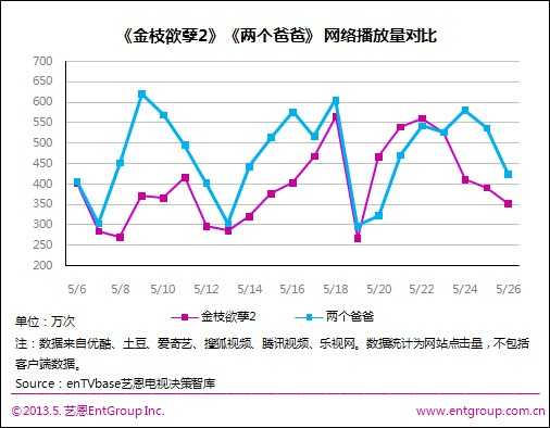 据艾瑞咨询数据显示,在《金枝欲孽2》的主要播出平台优酷网上,《金2》总有效播放时长高于《两个爸爸》约74%.《金2》凭借系列剧集的良好群众基础,仍保持着可观的惯性收视人群;而在人均有效播放时长上,《两个爸爸》高于《金2》117%.在电视剧产业”剧二代”泛滥之时,单纯”啃老本”并不是权宜之计,赢得点击量却赢不得好口碑,只能自断后路,只有拥有新颖题材和精良制作的诚意之作才能更受观众的青睐。