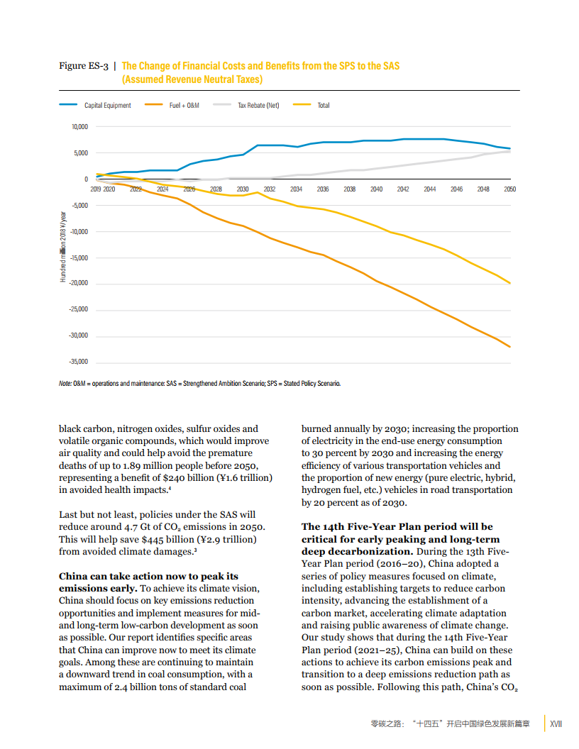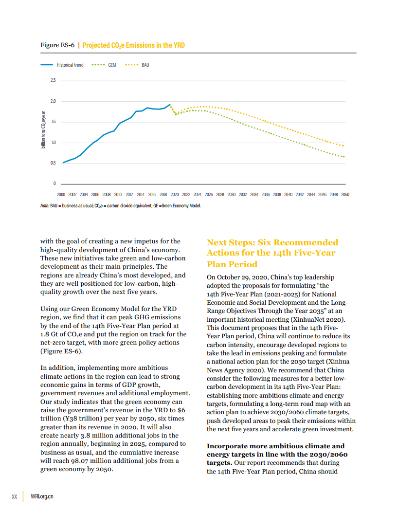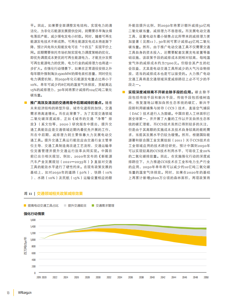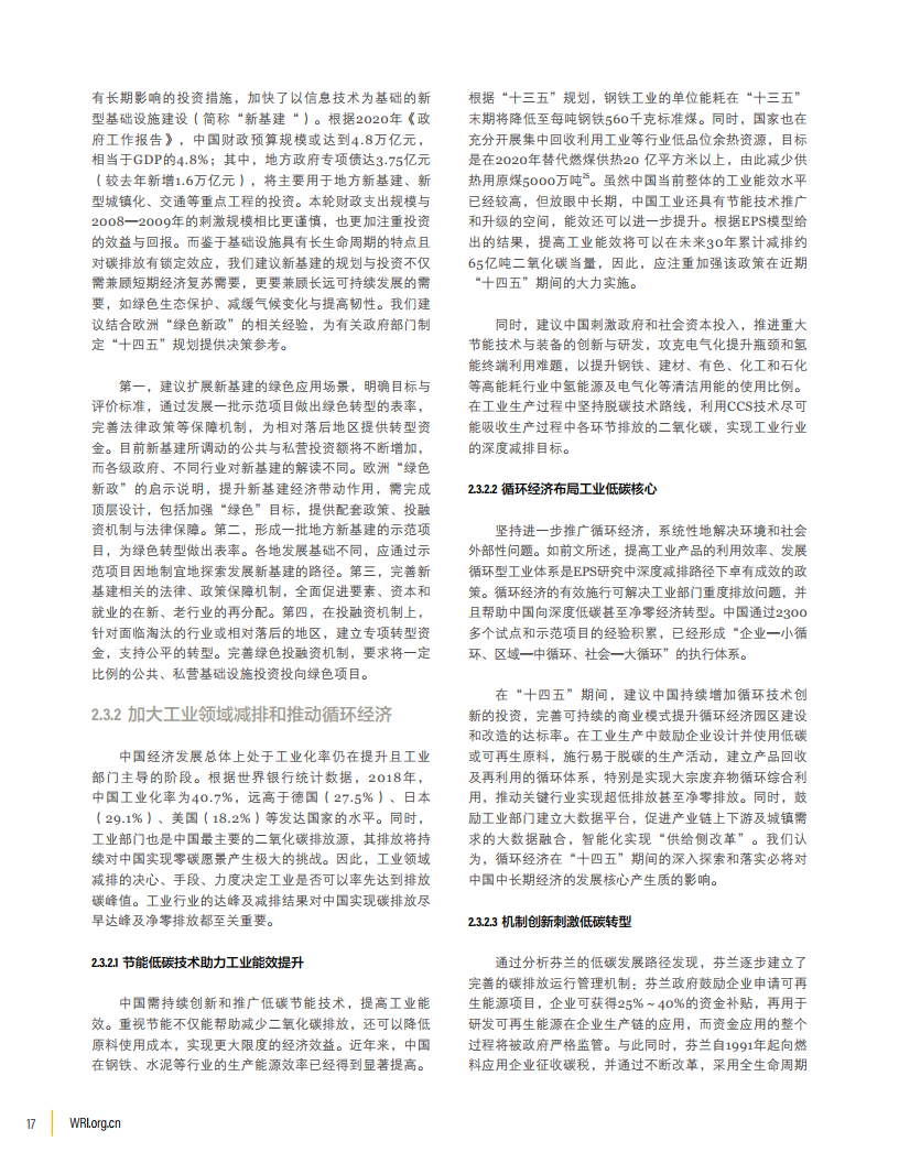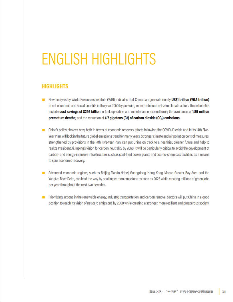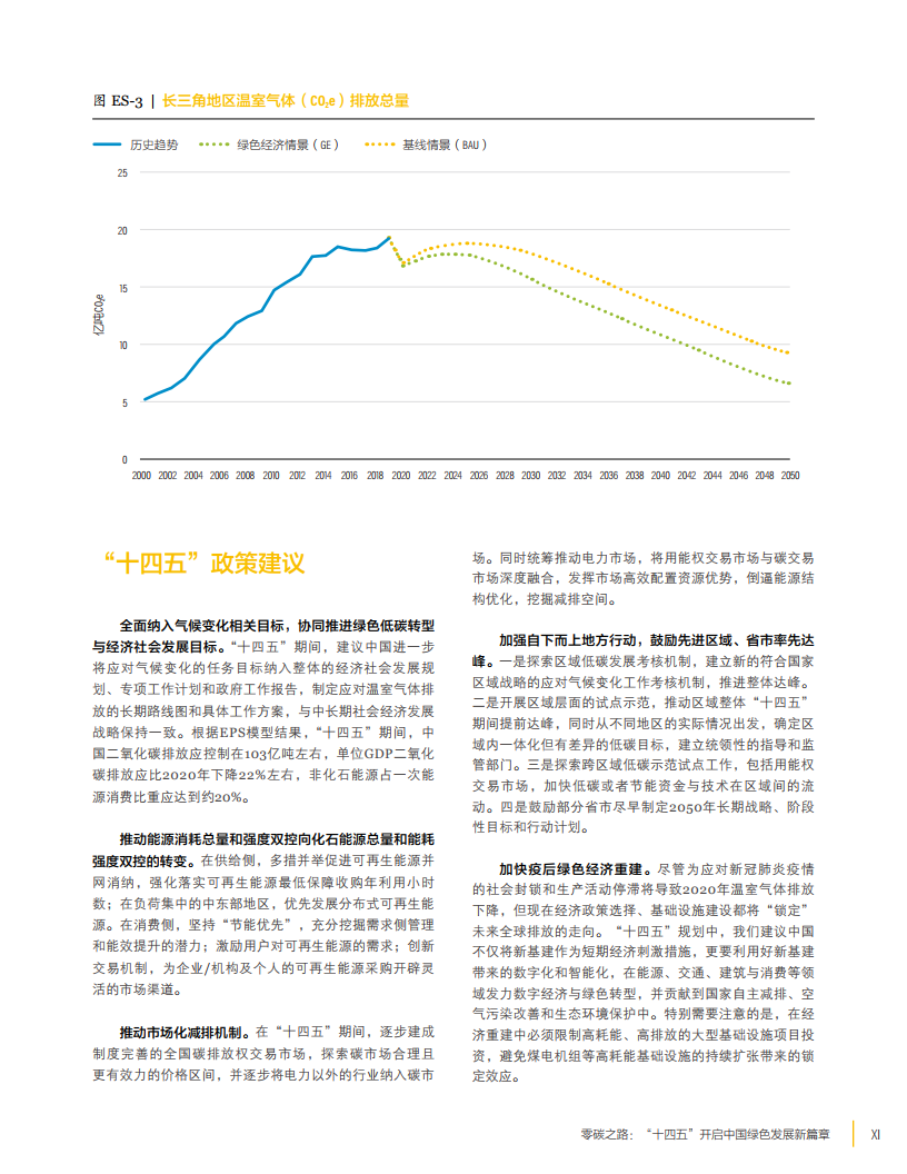 面对新冠肺炎疫情后种种不确定因素和最新的2030年前达峰及2060年前碳 中和的气候目标,中国必须在“十四五”(2021—2025年)初期提出一个更具 韧性、低碳、可持续的中长期经济发展计划,更新的国家自主贡献(Nationally Determined Contribution, 简称NDC)和长期温室气体低排放发展战略(Longterm low greenhouse gas emission development strategy,简称LTS),布局中长期 低碳发展蓝图,为中国生态文明建设、全球应对气候变化目标做出贡献。在此背景 下,世界资源研究所协同有关研究机构描绘了一幅中国在2050年实现深度脱碳的 愿景,并着重讨论正在筹划的国民经济和社会发展第十四个五年规划纲要(以下简 称“十四五”规划)中的低碳转型政策选择以及正在更新的国家自主贡献,希望该 报告能够为国家及地方政府决策提供科学参考与智力支持。
