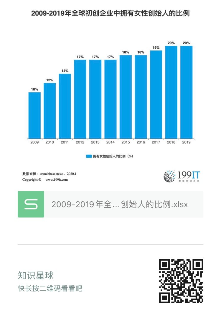 2009-2019年全球初创企业中拥有女性创始人的比例(附原数据表) ​​​​