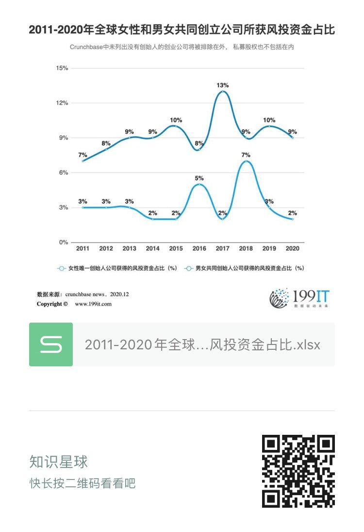 2011-2020年全球女性和男女共同创立公司所获风投资金占比(附原数据表) ​​​​