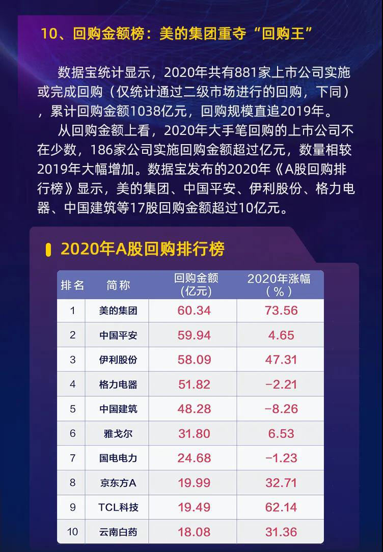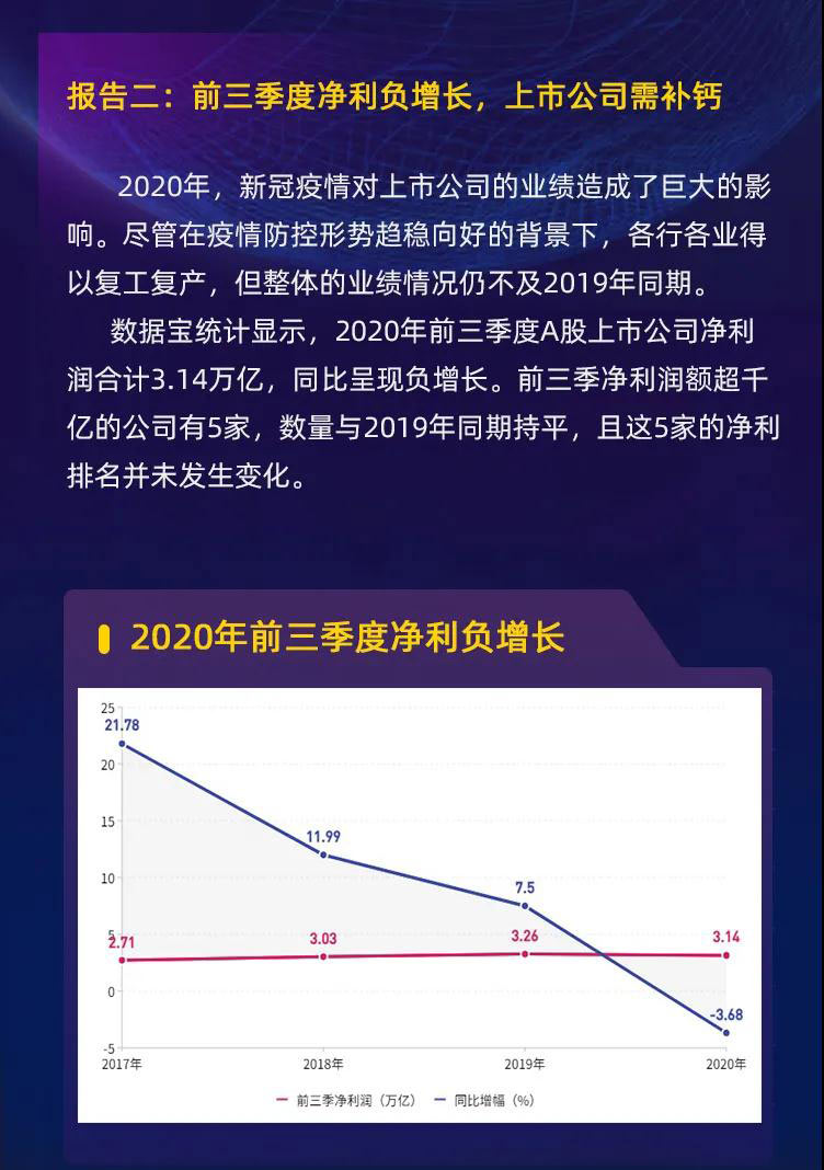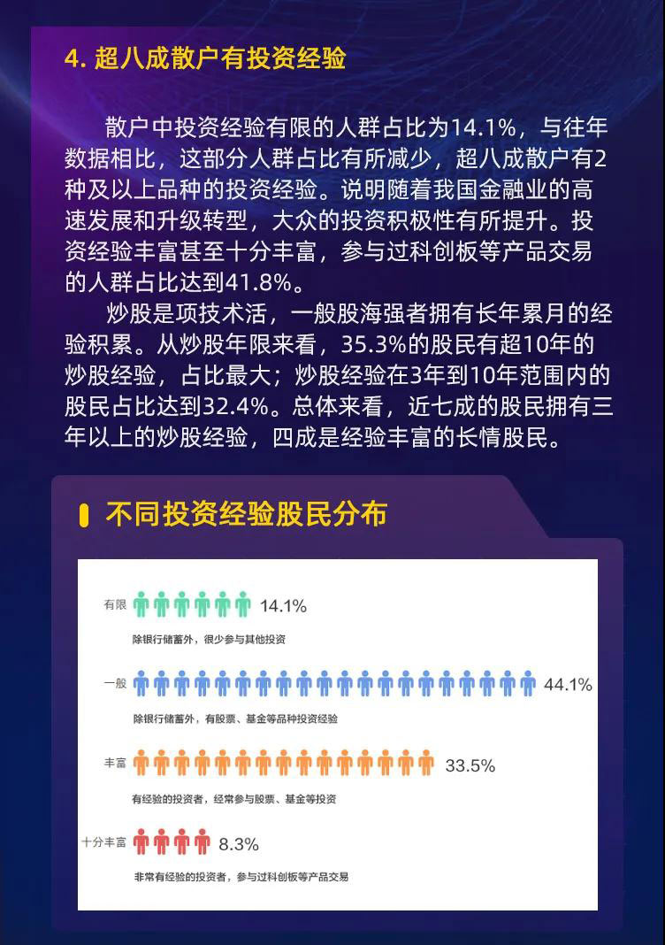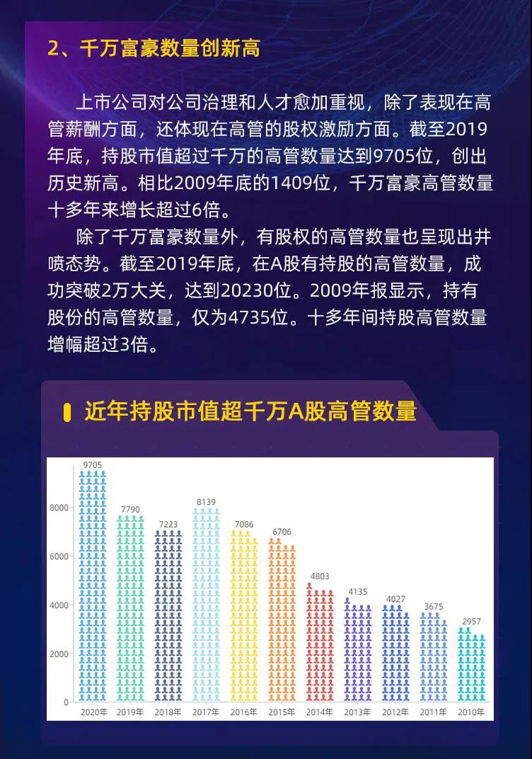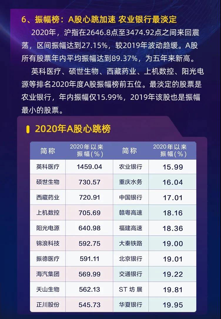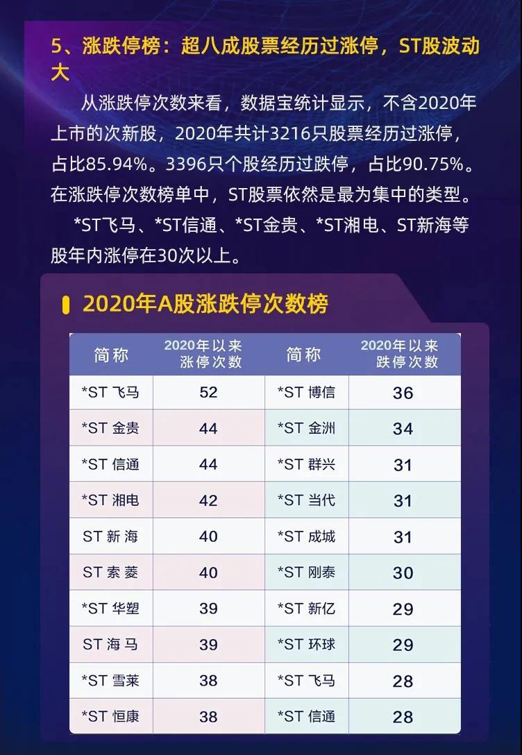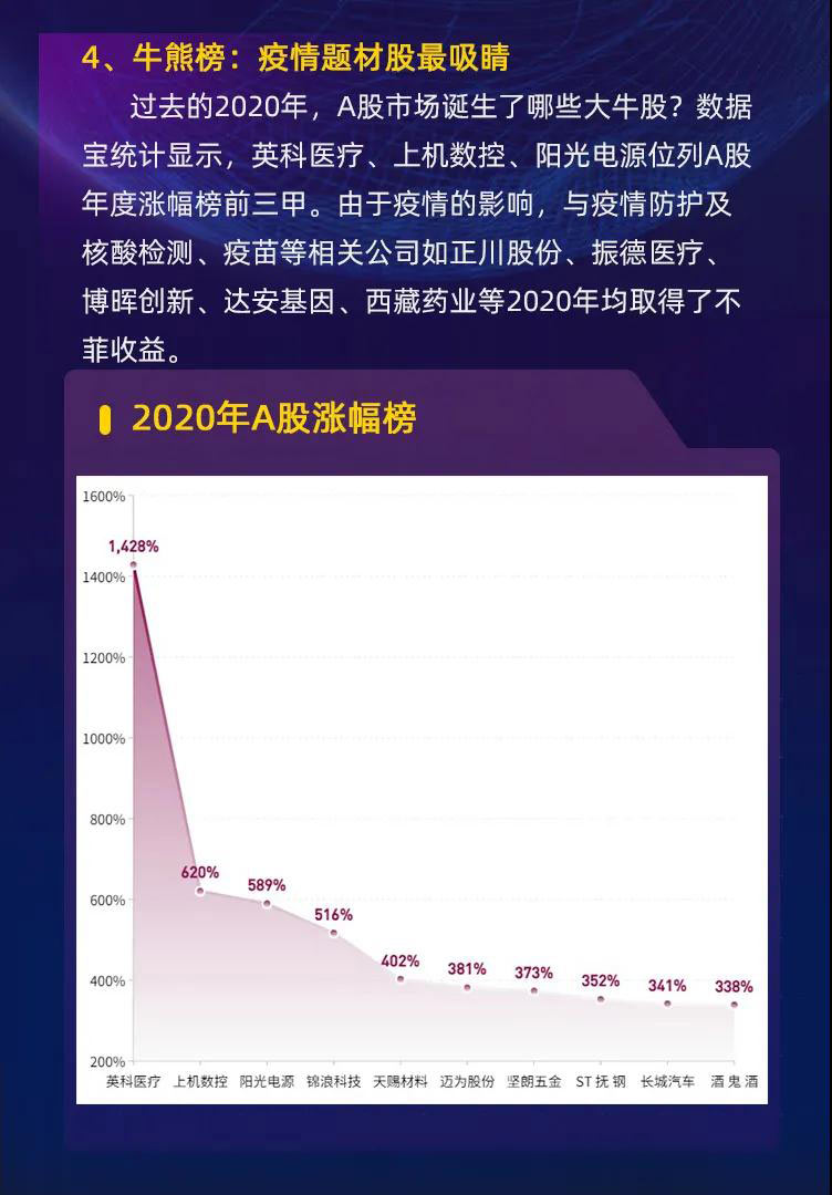 2020年A股画像:00后出道占股民1.1% 2020年,新冠疫情一度打破社会经济生活的常态,给资本市场带来独一无二的冲击。股市却逆势而上,在注册制改革的推动下,A股IPO募资金额创近十年新高,科技股发力,大消费股、顺周期股大放异彩,北上资金、外资纷纷涌入A股市场,对中国经济投了赞成票。 《A股画像(2020)》,从市场、人物、年度排行榜、上市公司等全方位出发,大数据全面透视值得纪念的2020年,为进击2021年做好铺垫。 (文章来源:数据宝 更多阅读:ChinaVenture:2015年7月A股定向增发市场 52家完成1529.26亿元美国追踪A股ETF本月已跌14%德勤:2014-2015中国A股上市公司高管薪酬调研报告Crunchbase:过去十年美国大型基金融资分析EnergyPolicyTracker:G20国家承诺投资5768.2亿美元支持能源发展Crunchbase:2018年中国初创企业已经获得938亿美元投资Lexington Law:美国的千禧一代对股市并不“感冒”CTR:中小城市青年观众电视收视特征简析世界经济论坛:2024年全球散户投资者报告德勤:2023年CEO调查南华早报:2021 年中国互联网报告研究报告青年人群和下沉人群是互联网理财“明日之星”preqin:女性仅占冲基金就业岗位的1/5Gallup:只有14%的女性使用理财网站咨询投资和退休建议Asymco每日一数:截止2014年6月底iOS系统设备已经销售886,580,000