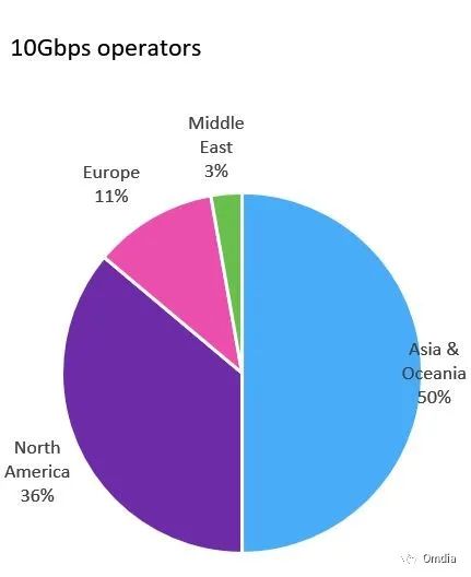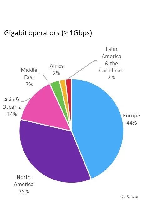 - 欧洲运营商在千兆服务方面处于领先地位,但亚洲&大洋洲地区的运营商已经向10Gbps迈进。