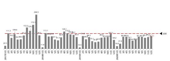 此外1月份是春节前,受到节前效应影响市场需求会大量释放;各品牌在春节前会积极进行促销营销活动,刺激需求增长;居民在春节前也有较大的消费意愿以及消费能力。综合上述因素,预计2021年1月份市场销量与12月销量水平相当。