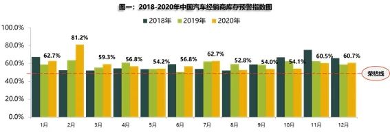 2020年12月31日,中国汽车流通协会发布的最新一期“中国汽车经销商库存预警指数调查”VIA(Vehicle Inventory Alert Index)显示,2020年12月汽车经销商库存预警指数为60.7%,较上月微涨0.2个百分点,较去年同期上升1.7个百分点,库存预警指数位于荣枯线之上。