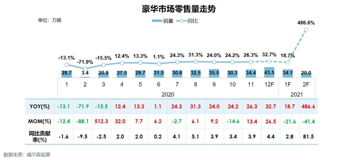 根据发布的《报告》显示,在海外疫情仍在蔓延的环境下,我国出口表现走强,推动宏观经济快速恢复,消费信心加强,且在年末及春节前旺销的驱动下,预期12月及明年1月市场零售继续实现理想的增长,而明年2月在今年2月超低基数对比下,同比增长接近500%;其中豪华品牌继续为市场带来较理想的增长贡献。