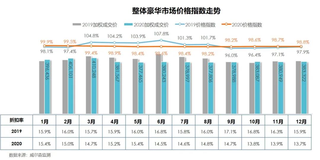 从价格走势看,豪华市场的折扣率有所减少,主要原因是年底多数经销商已完成全年销售目标,部分走量车型供货短缺价格回升以及年底购车人数增多的影响;从价格指数来看,整体市场小幅回升0.1%。