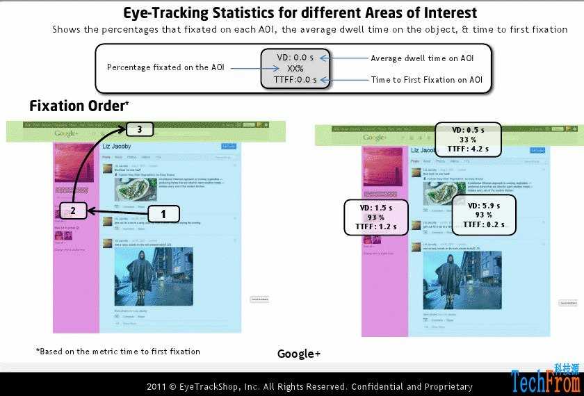 尽管测试者在Google+页面的停留时间比其他社交网站都稍长,但是其个人头像图片却没有收获太大的注意力。
