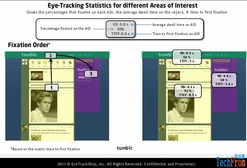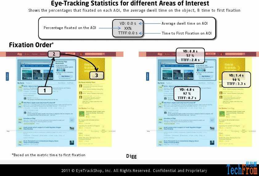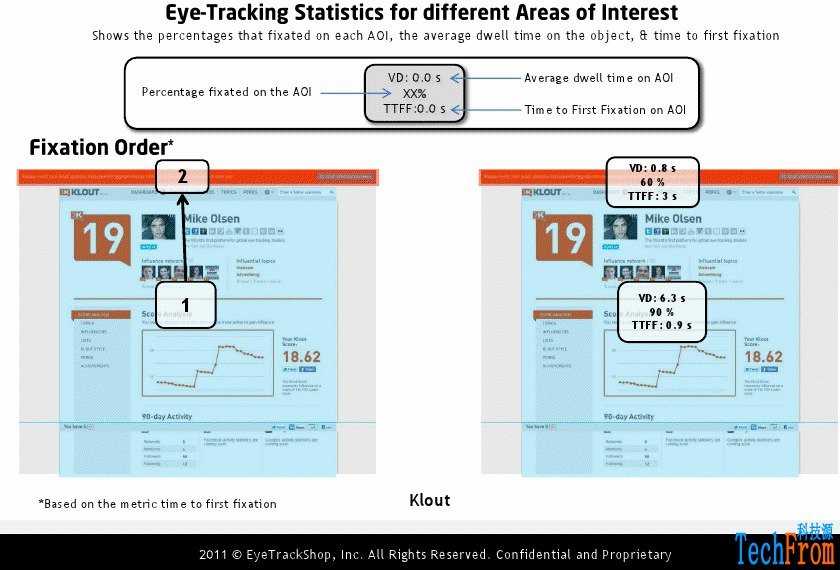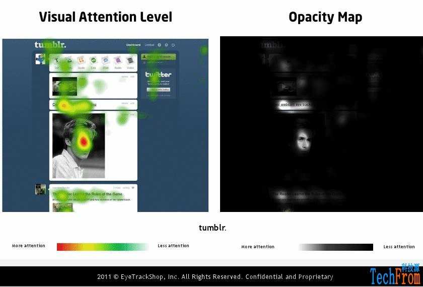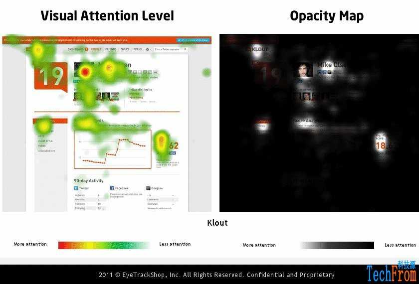 现在大家都在谈论网站的用户体验(UE或UX)和界面设计UI等热门话题,techfrom从来对概念本身不是特别关注,更关注实际应用和数据等。去年12月份左右,国外EyeTrackShop通过Mashable发布了一份有关国外几个著名网站和社交网络的用户眼球追踪图或者眼球热力图,尤其是个人信息页面(Profile Page)被浏览时候的热点分部情况。涉及到的被调查的网站包括:Facebook,Google+,LinkedIn,Flickr,Youtube,Klout,Reddit,Digg,Tumblr,Twitter,StumbleUpon 和Pinterest。我们特将呈现过读者,